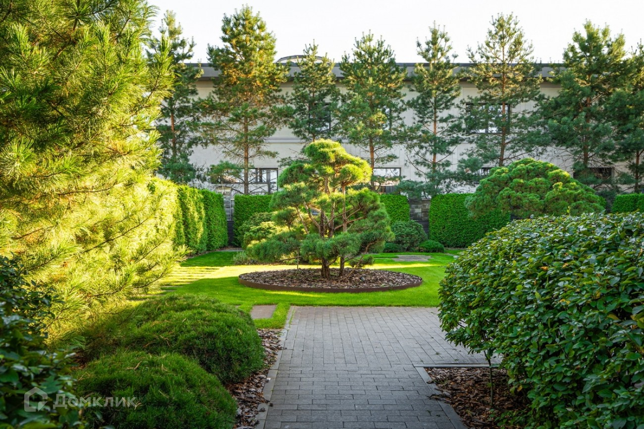 Участок 20 соток правильной формы, выполнен роскошный ландшафтный дизайн.