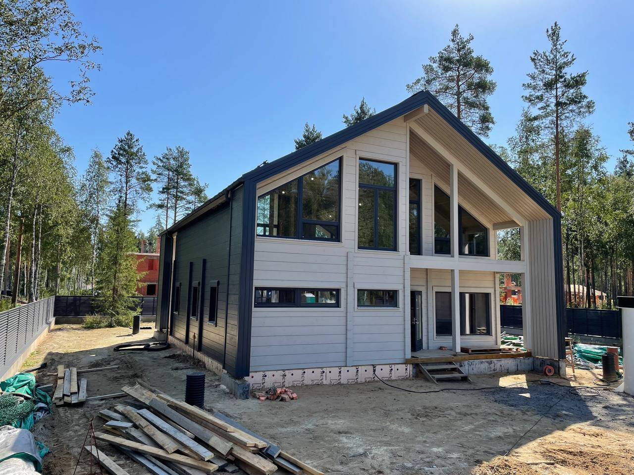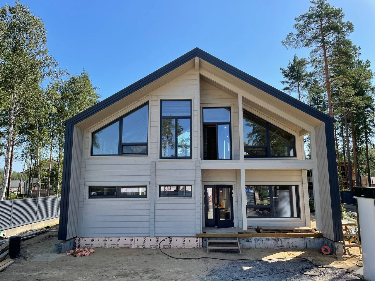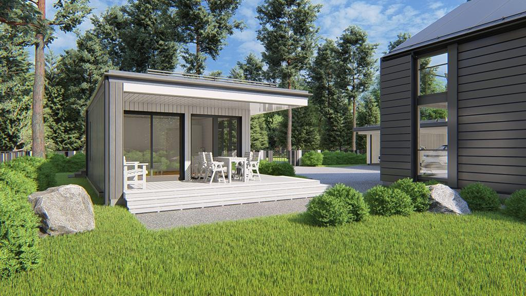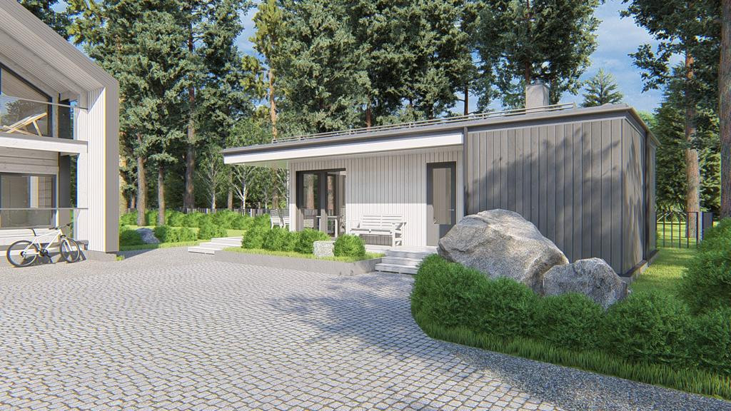 — дом общей площадью 303 м2 в современном стиле Barnhouse из клееного бруса производства Honka (Финляндия);