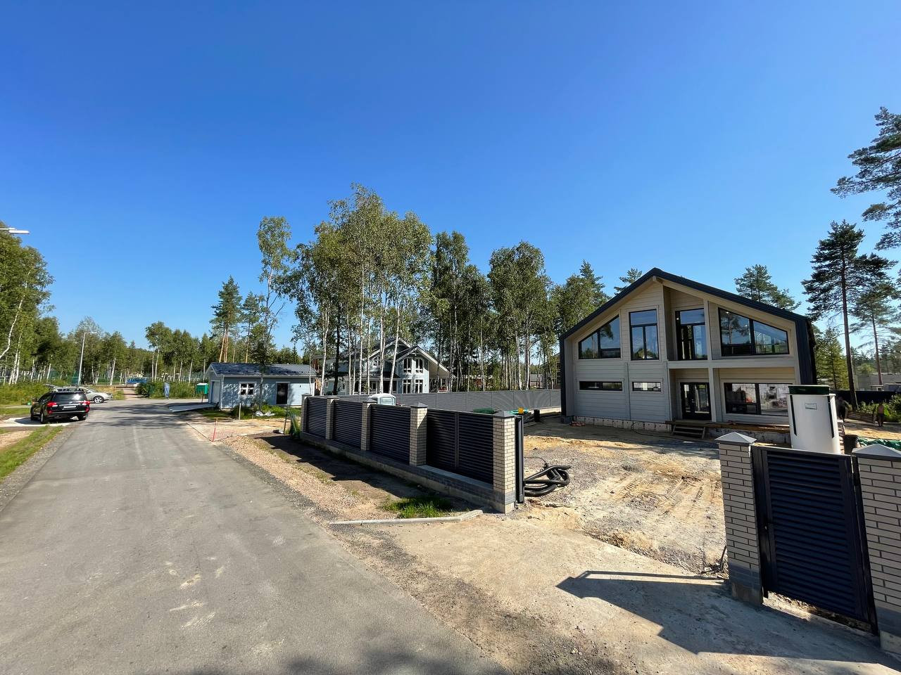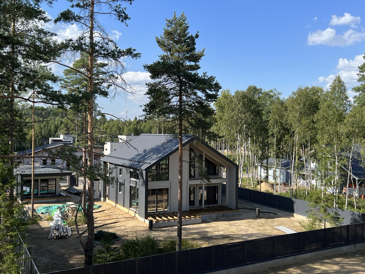 Участок полностью подготовлен: произведена выемка грунта до плотного основания и отсыпка песком. Дом расположен на улице между парком и природным заповедником Хаапала, на участке сохранены хвойные деревья.
