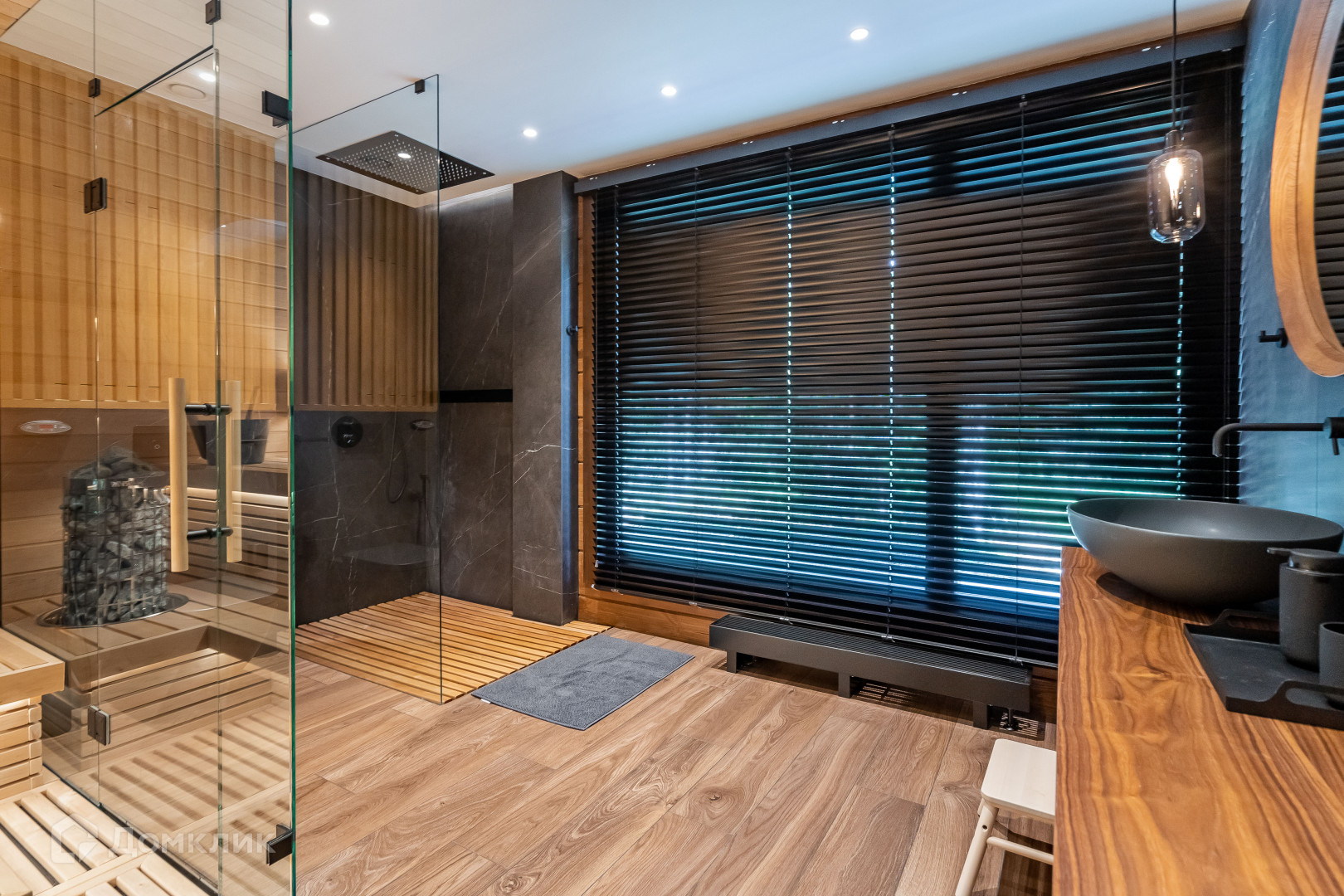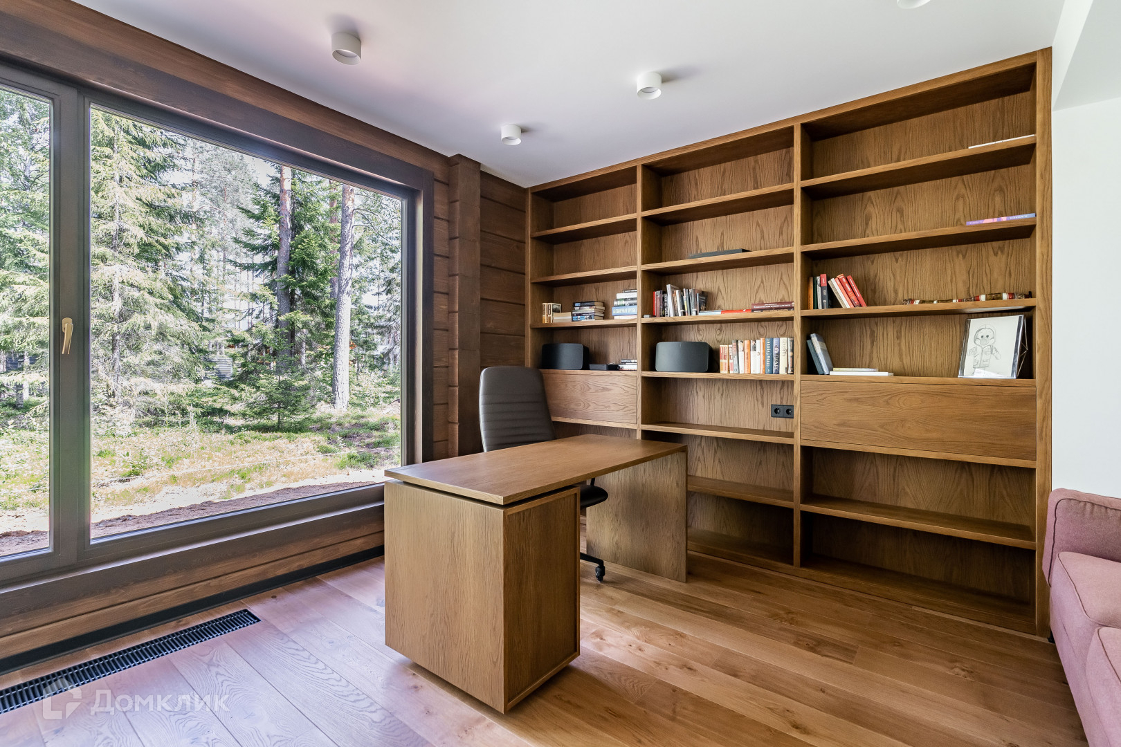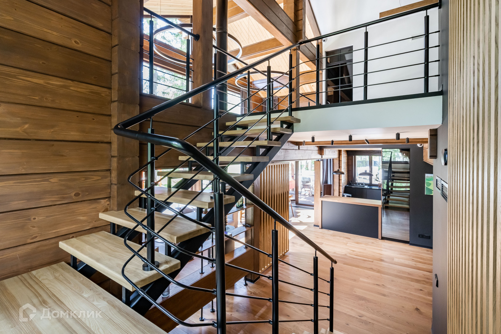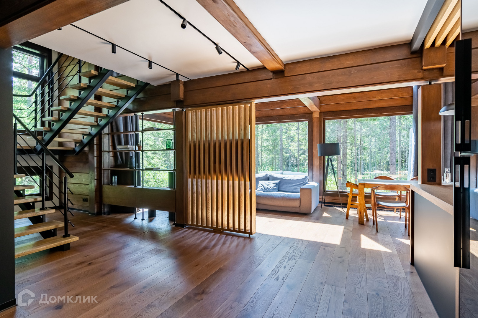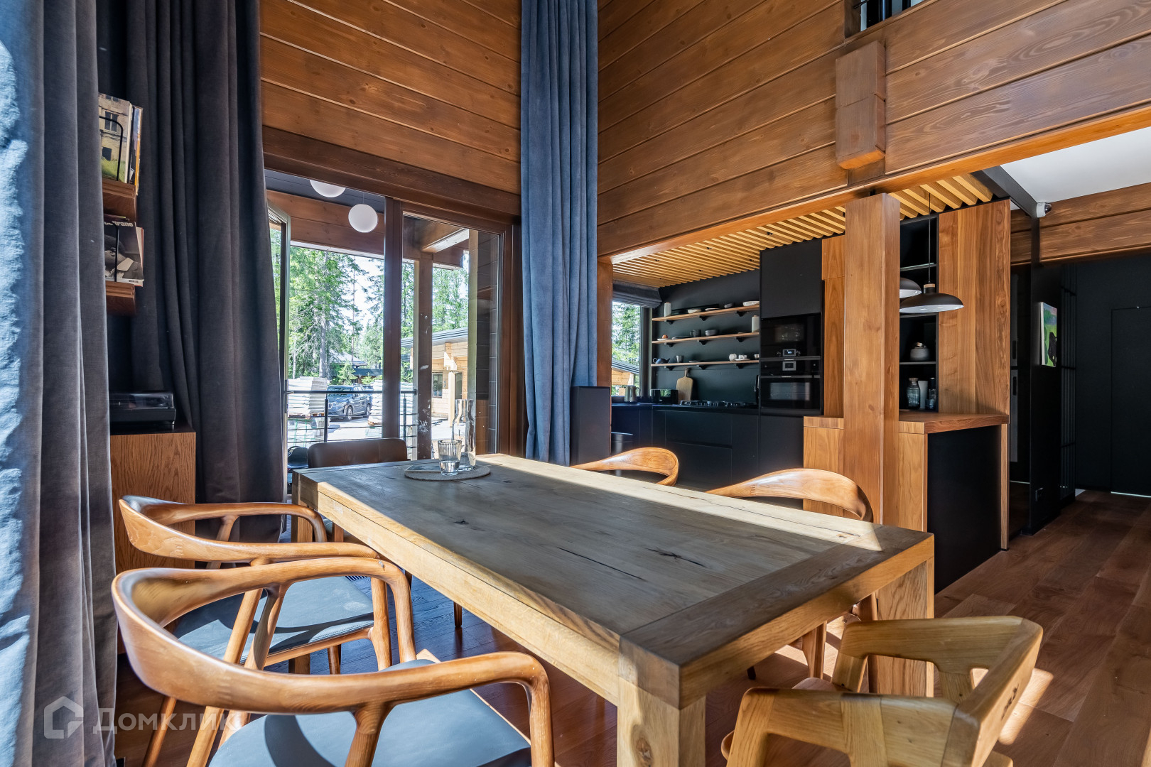 1 этаж - объемное пространство кухни-гостиной со вторым светом (вид окон на заповедник), кабинет, тех помещение, сан узел с сауной