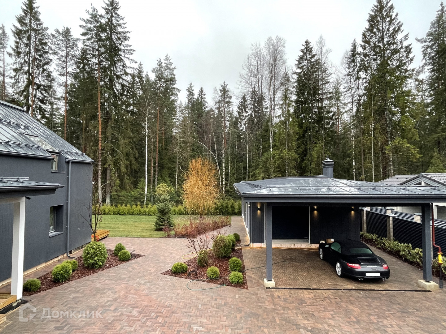 Домовладение расположено непосредственно на границе с природным заповедником Хаапала — панорамные окна мастер-спальни, гостиной и кухни выходят на лес.