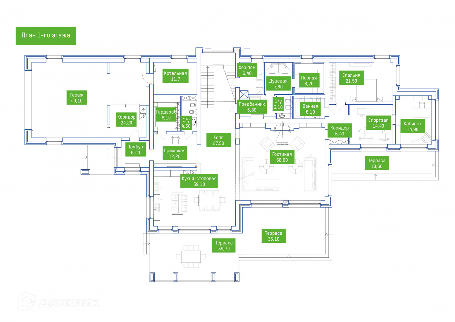 Арт. 46190942 В коттеджном поселке «Репино Парк» продается дом общей площадью 642,8 м² + баня площадью 196 м² на участке 47,7 соток.