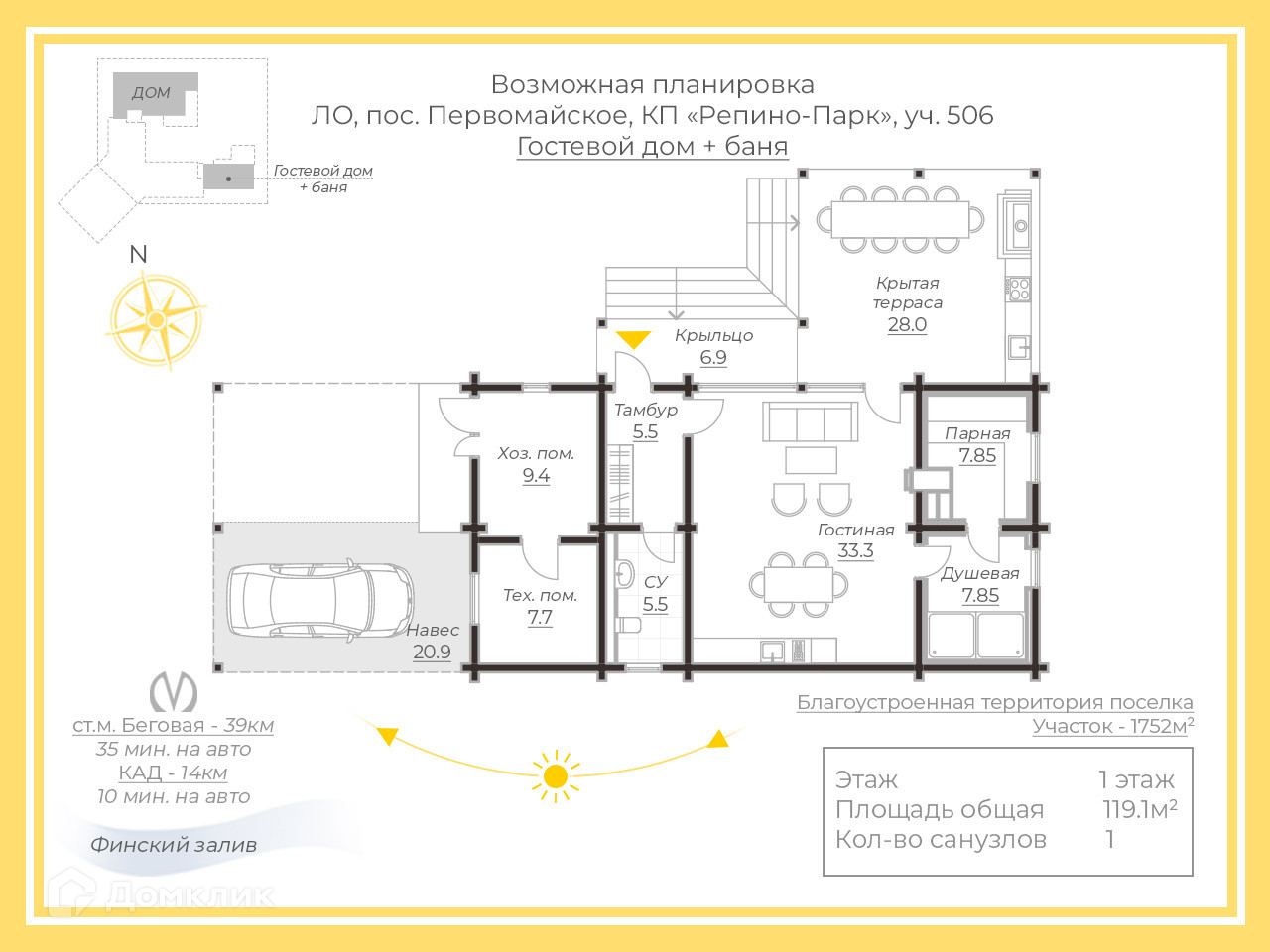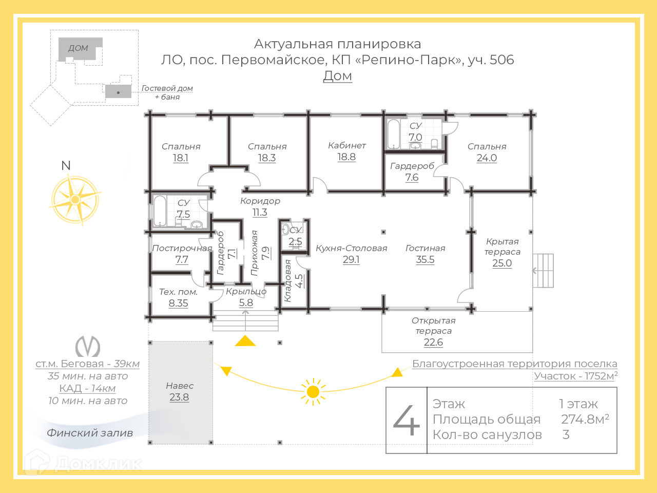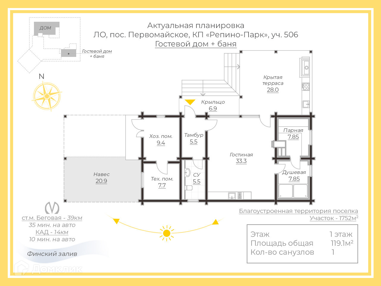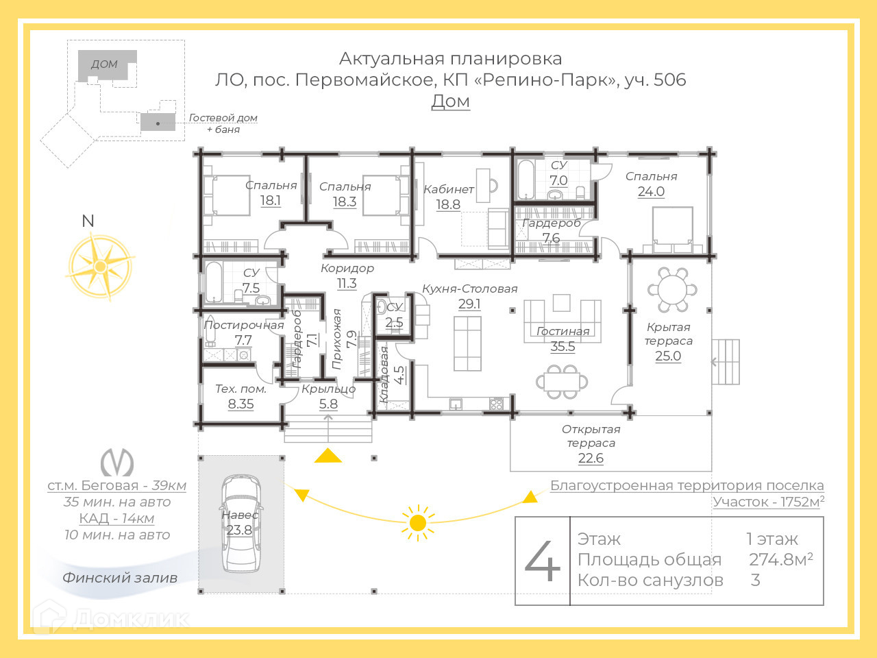 1-этажный дом, 394 м2, на продажу в коттеджном посёлке Репино Парк, коттеджный посёлок Репино Парк, 506
