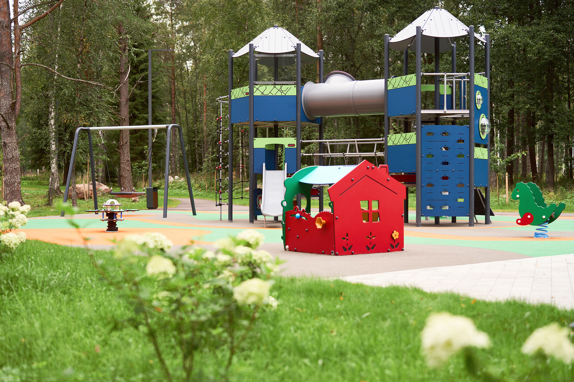 Богатая спортивная инфраструктура поселка «Репино Парк», современные детские площадки, продуманная система прогулочных дорожек, безопасная среда и удобная локация станут хорошим дополнением для повышения качества жизни вашей семьи.