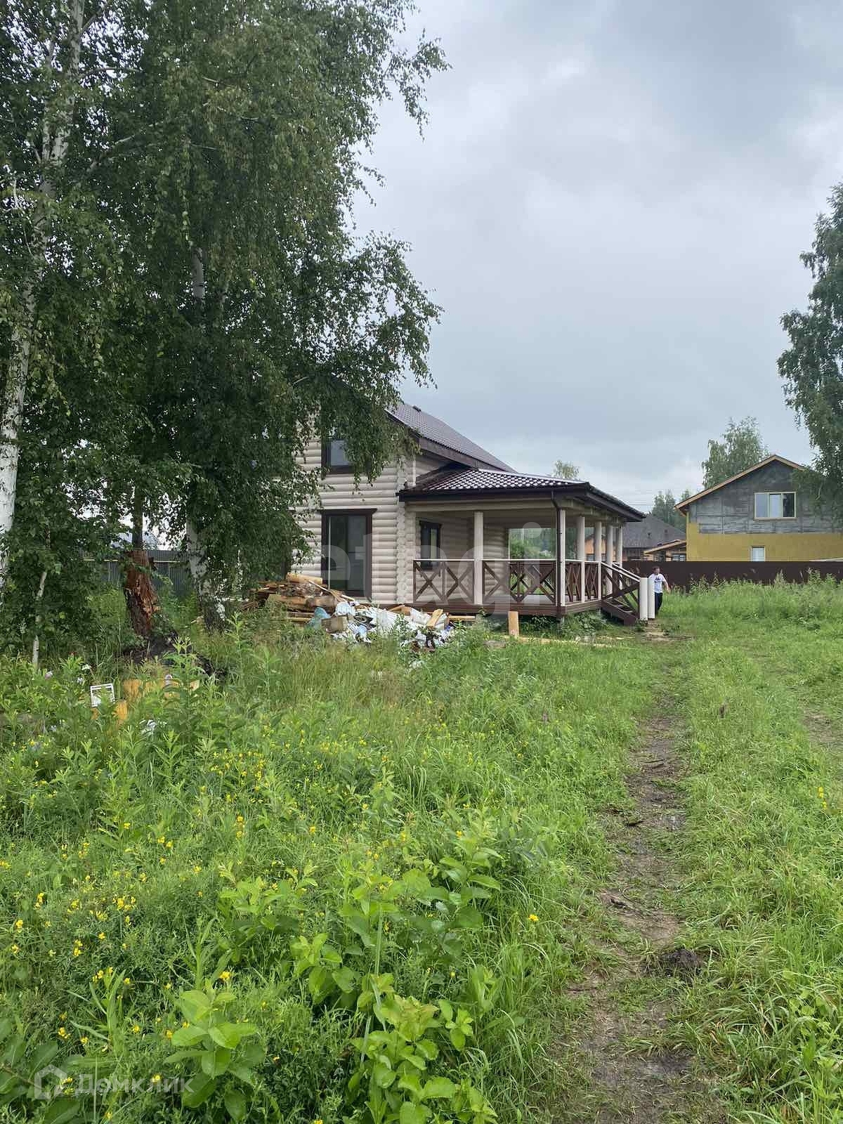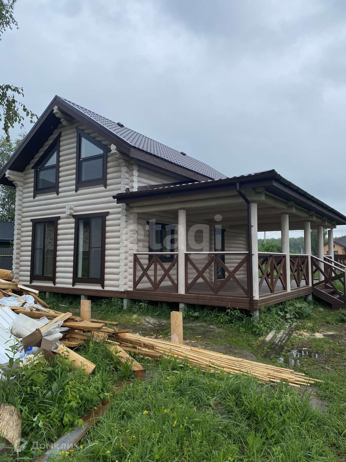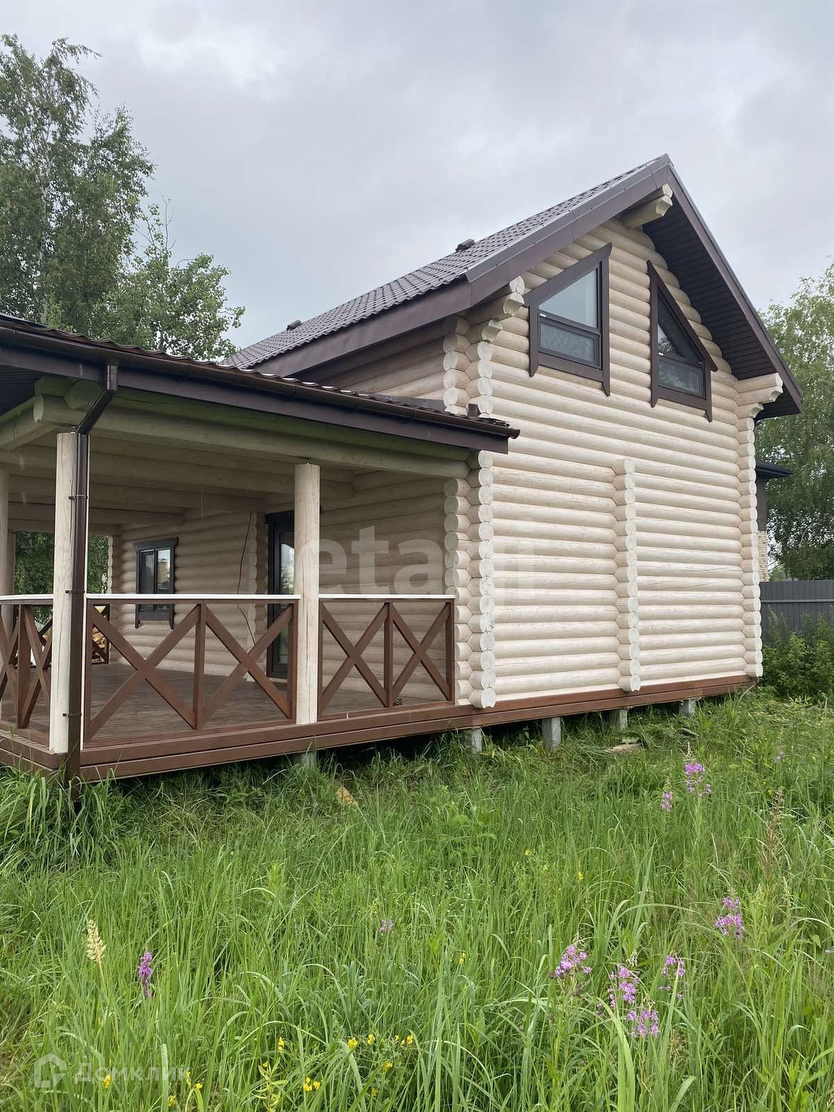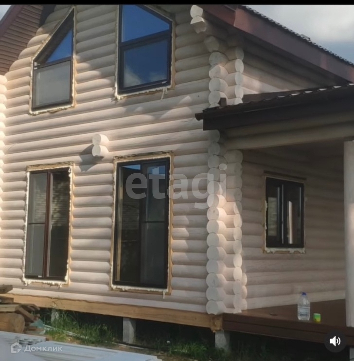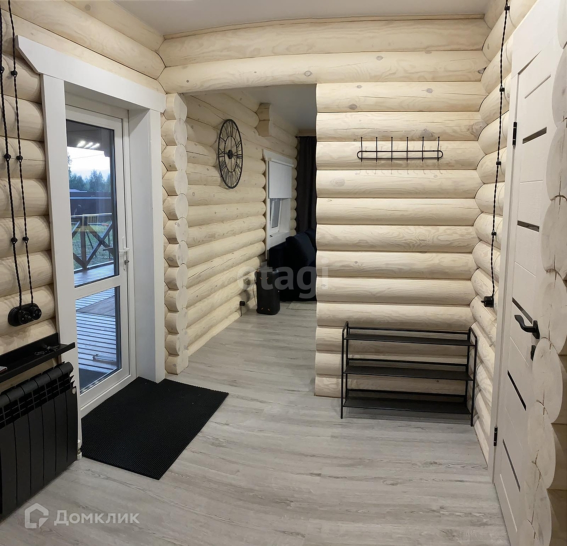 Дом с ремонтом и мебелью, полностью готов к проживанию. Построен по проекту. Фундамент на железо-бетонных сваях, оцилиндрованное бревно 22 диаметра, из материала -сосна. Кровля перекрыта металлчерепицей. В доме на 1 эт.: тех.помещение 5.3 кв.м., с/у 4.8 кв.м., кухня-гостиная 25.3 кв.м., прихожая 9 кв.м., терраса 34.3 кв.м. На 2 этаже : 2 жилые комнаты 25.6 и 10.9 кв.м, лестничный холл. 5.6 кв.м.