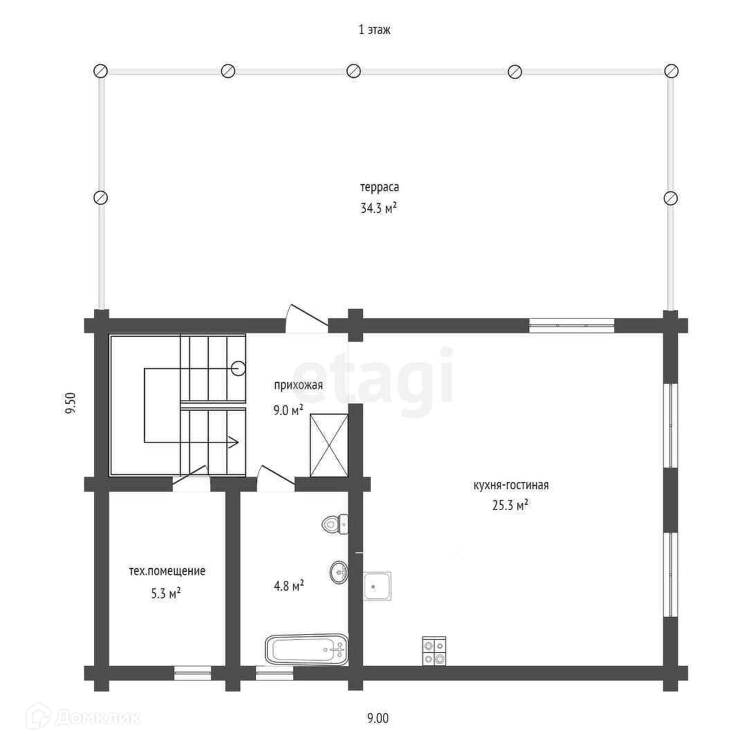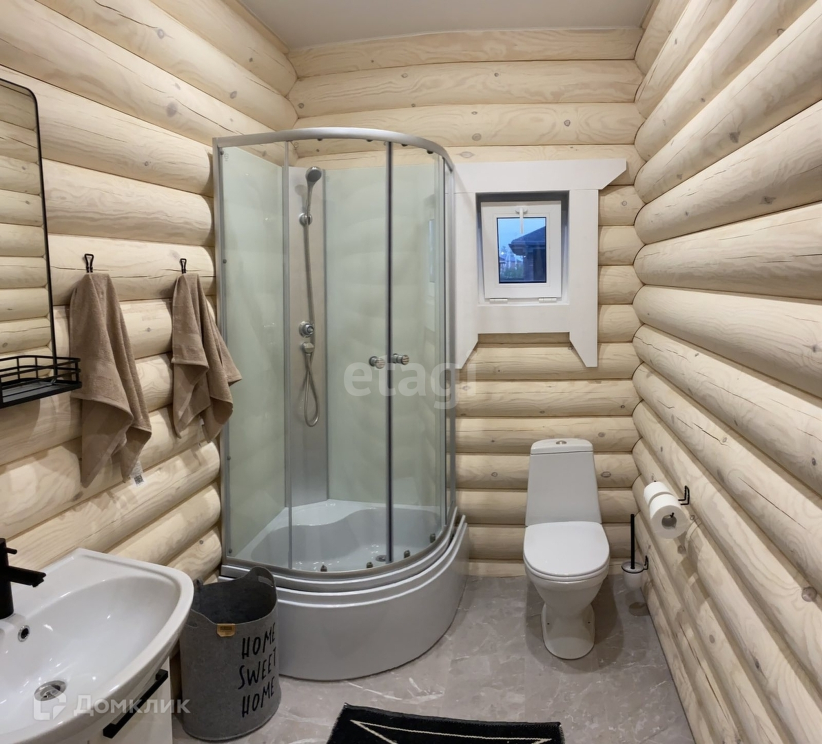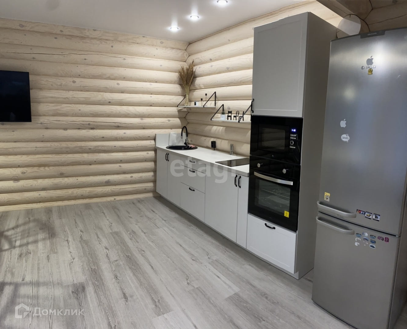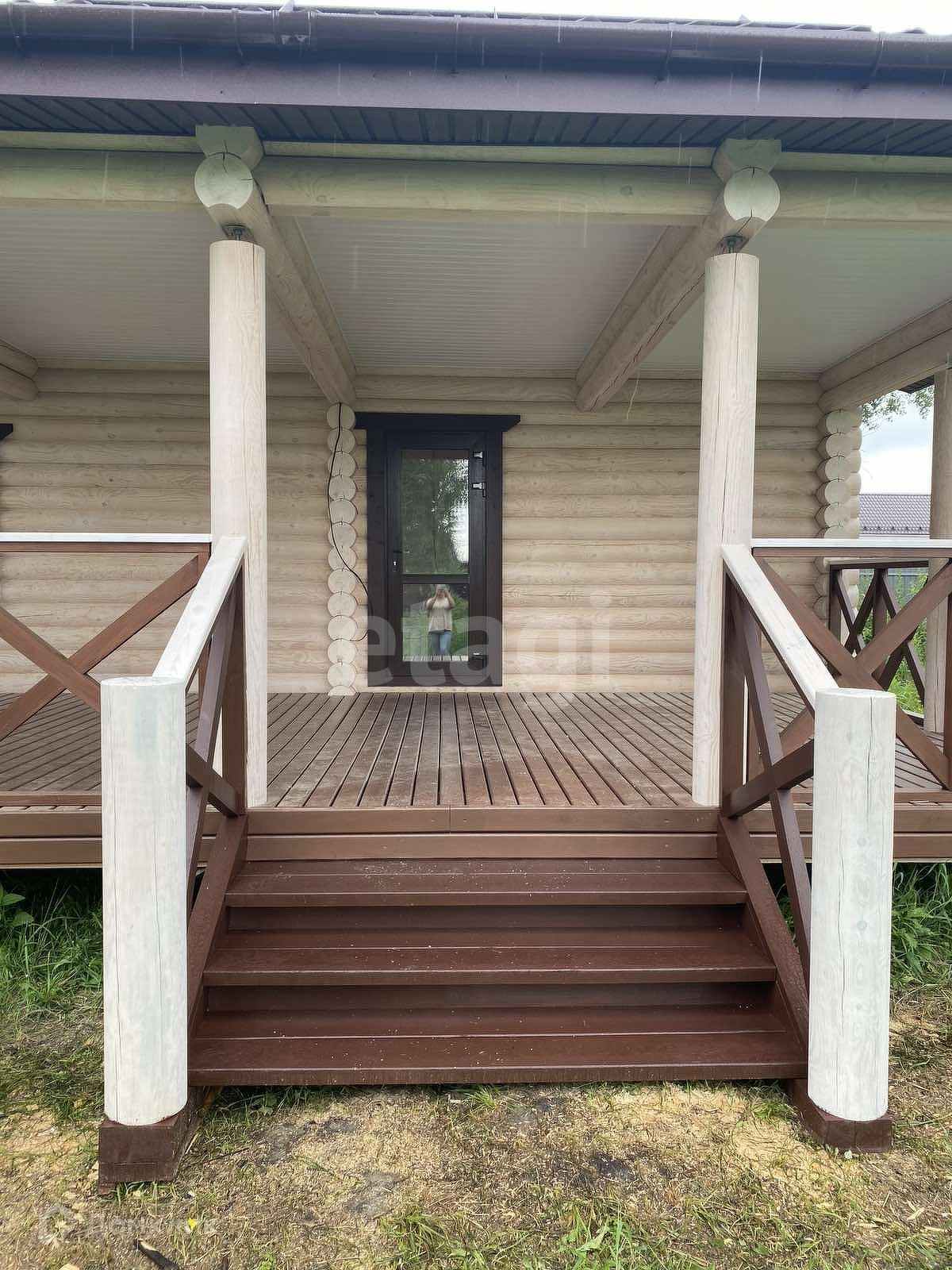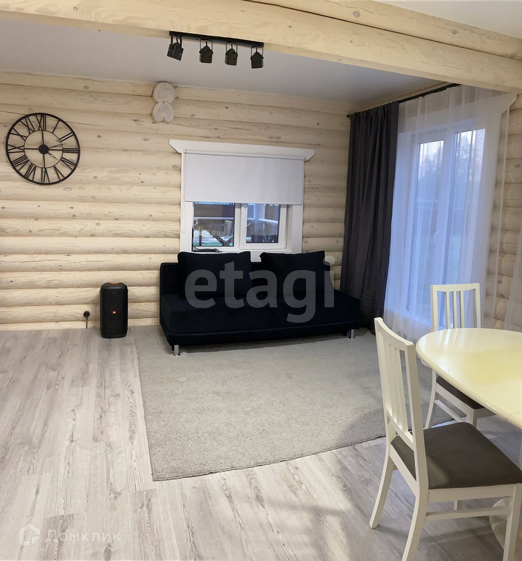 Дом с ремонтом и мебелью, полностью готов к проживанию. Построен по проекту. Фундамент на железо-бетонных сваях, оцилиндрованное бревно 22 диаметра, из материала -сосна. Кровля перекрыта металлчерепицей. В доме на 1 эт.: тех.помещение 5.3 кв.м., с/у 4.8 кв.м., кухня-гостиная 25.3 кв.м., прихожая 9 кв.м., терраса 34.3 кв.м. На 2 этаже : 2 жилые комнаты 25.6 и 10.9 кв.м, лестничный холл. 5.6 кв.м.
