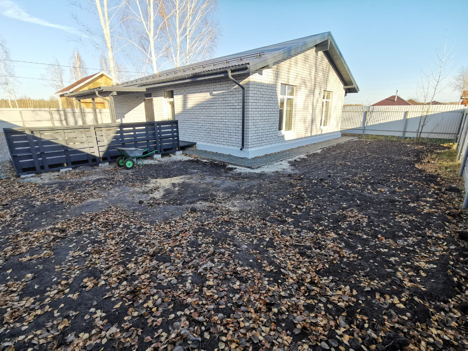 Выполнено благоустройство участка (высажен газон, сделана декоративная отсыпка на геотекстиль). За домом есть место под огород - при необходимости (10 грядок теплица и небольшой сад - войдут).