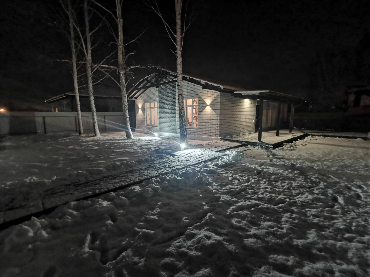 Смонтирована дорожка с декоративной подсветкой.