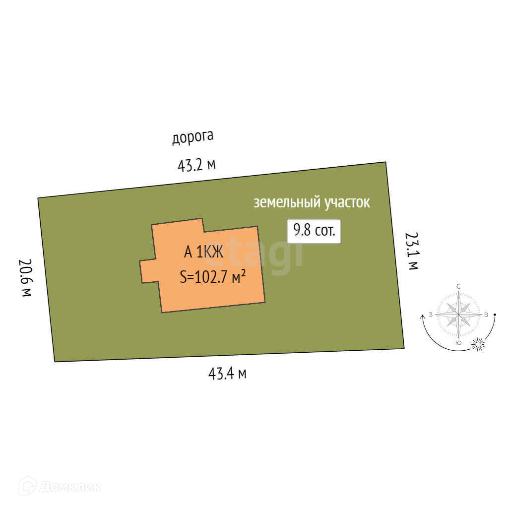 Площадь участка 9.8 сот.
