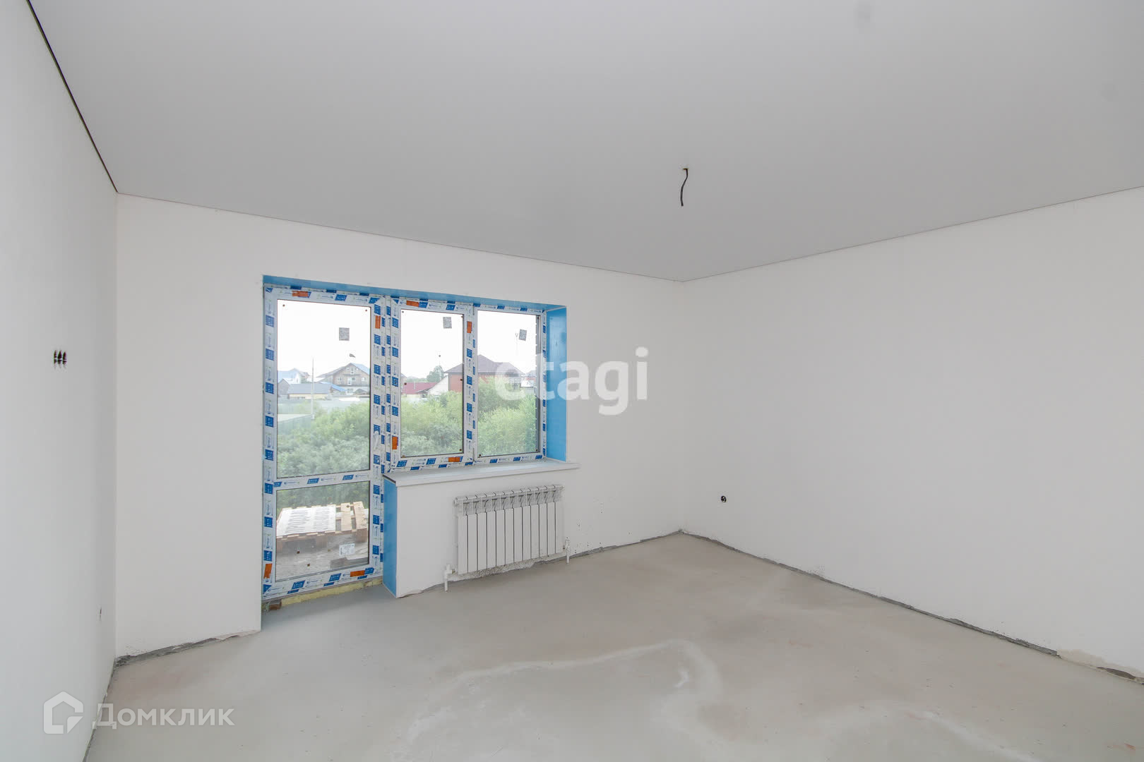 Оштукатурен и шпаклеван «под обои», произведена стяжка пола, проведено электричество , патроны, проведен теплый пол (система подключена и функционирует), также установлены радиаторы отопления . Установлен водяной насос (скважина). Окна тройной стеклопакет . Отопление газовое, септик закрытого типа 8 куб.м.. Участок 4 сотки, прямоугольный, огорожен забором из металлического профиля.