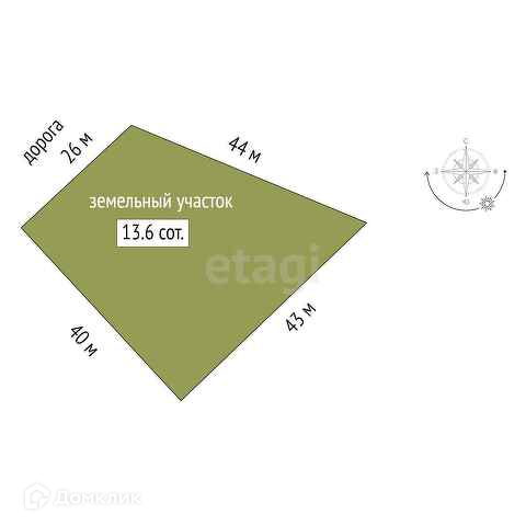 Площадь участка 13.6 сот.