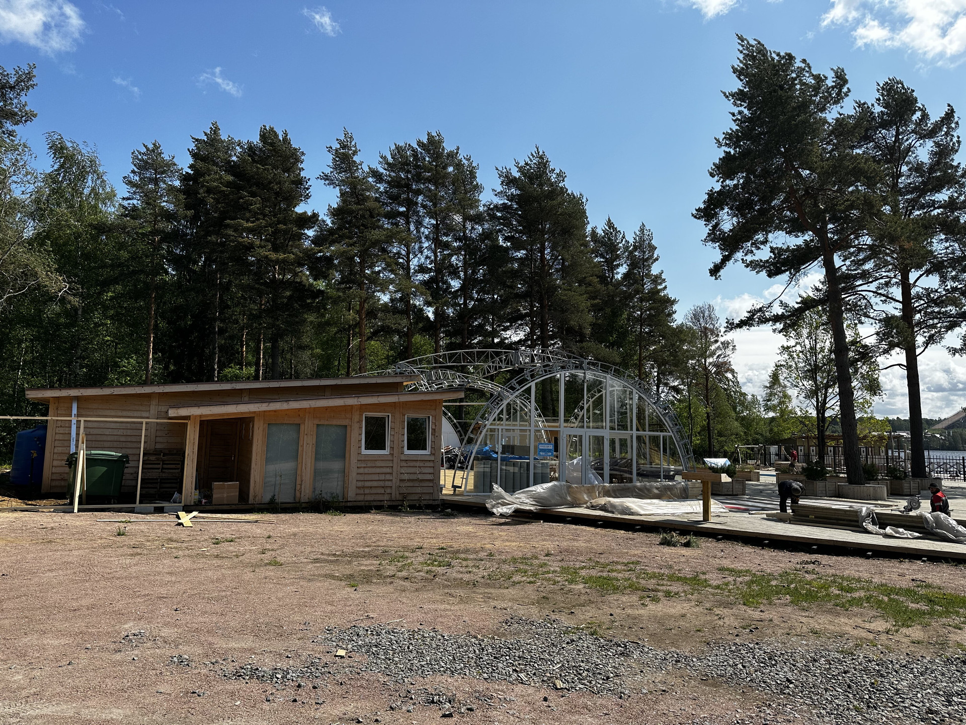 Инфраструктура посёлка на высшем уровне! Асфальтированные дороги по всему посёлку. Пешеходные и велодорожка.  Поселковое освещение. Для жителей коттеджного поселка имеется возможность пользоваться собственным благоустроенным пляжем с кварцевым песком, пирсом, детскими площадками, рестораном, бассейнами, станцией вейкбординга и сёрфинга, вертолетной площадкой. Всесезонный курорт “Охта парк” в 20 минутах езды на авто. КП имеет полностью охраняемую территорию и индивидуальное ограждение всего посёлка: два поста охраны, въезд по пропускам. Видеонаблюдение по периметру и всему посёлку. Два въезда (один гостевой, второй для грузовых машин). В поселке доступен высокоскоростной интернет.