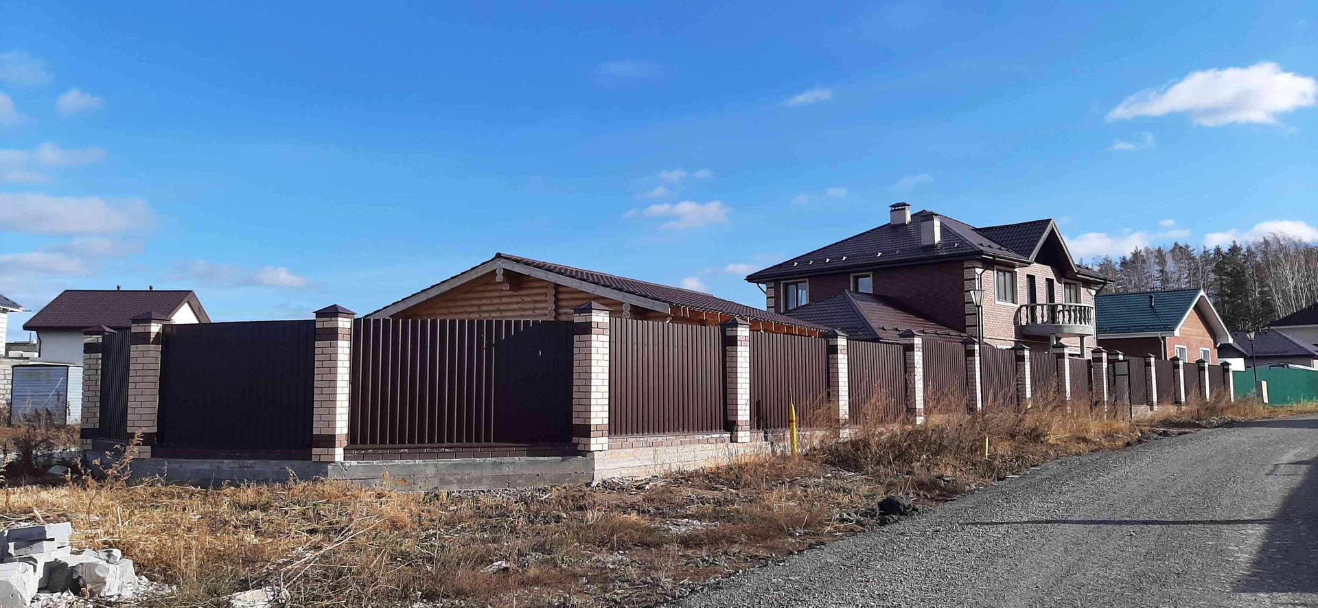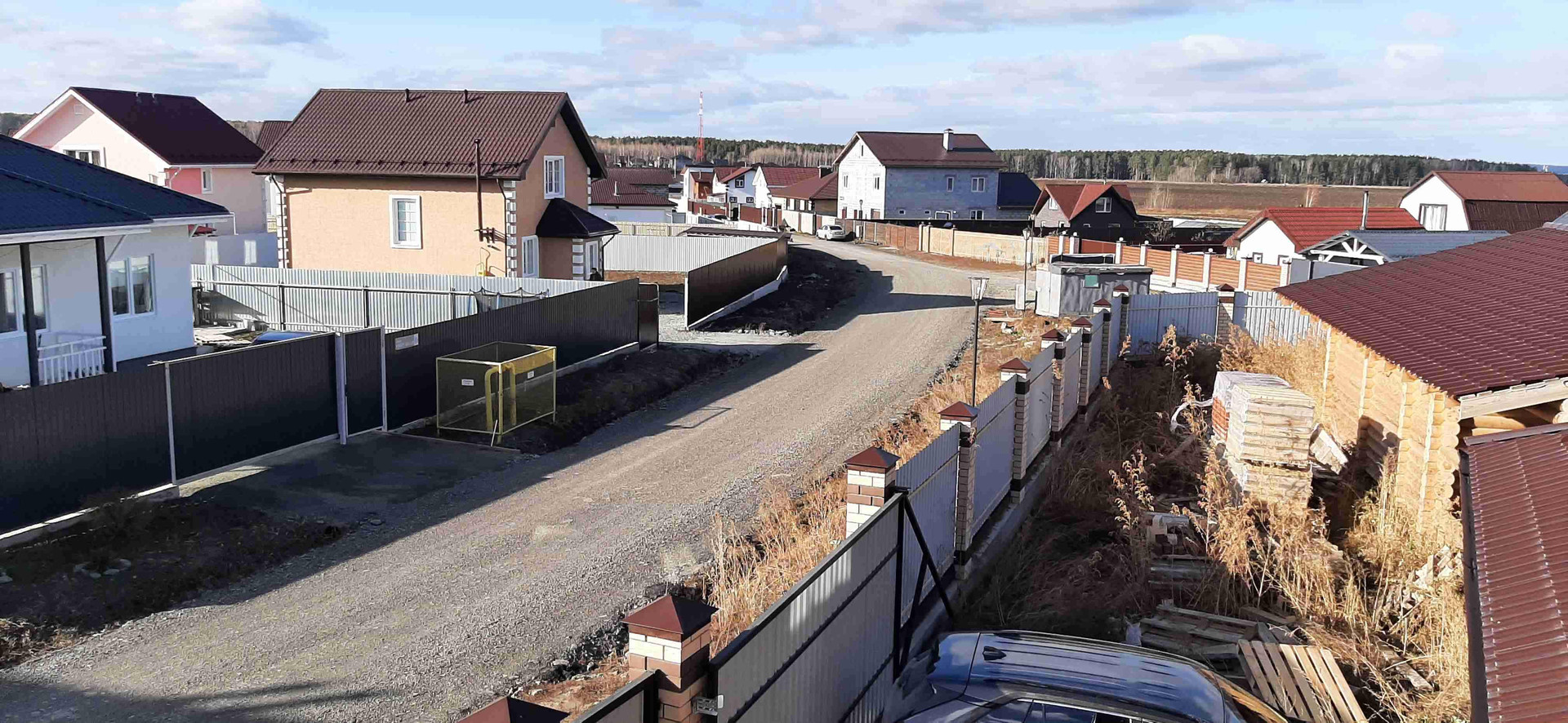 Поселок огорожен по периметру, установлен пост охраны на въезде в поселок.