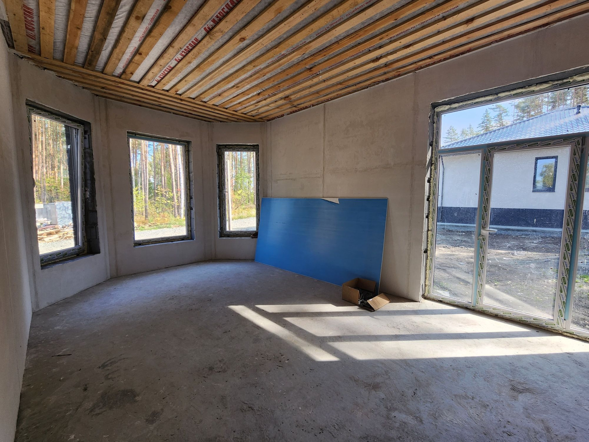 тамбур, прихожая, отдельная котельная, совмещенная гостиная с кухней, три спальни около, 2 сан.узла, терраса.