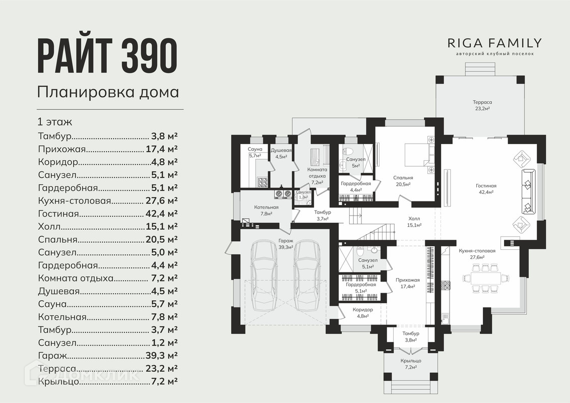 2-этажный дом, 390 м2, на продажу в коттеджном посёлке Рига Фэмили