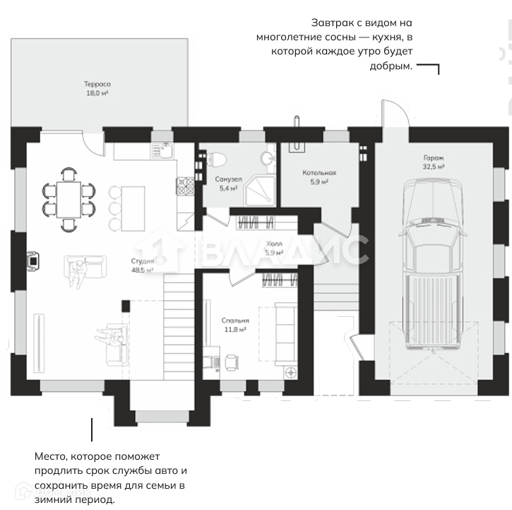 Архитектурная концепция основана на единении природы   И окружена лесом на 360 градусов. Отличительной особенностью домов поселка стали большие панорамные окна, которые наполнят пространство солнечным светом и откроют вид на просторный участок или вековой лес. А также просторные террасы, позволяющие жителям отдыхать и проводить время с близкими на свежем воздухе.