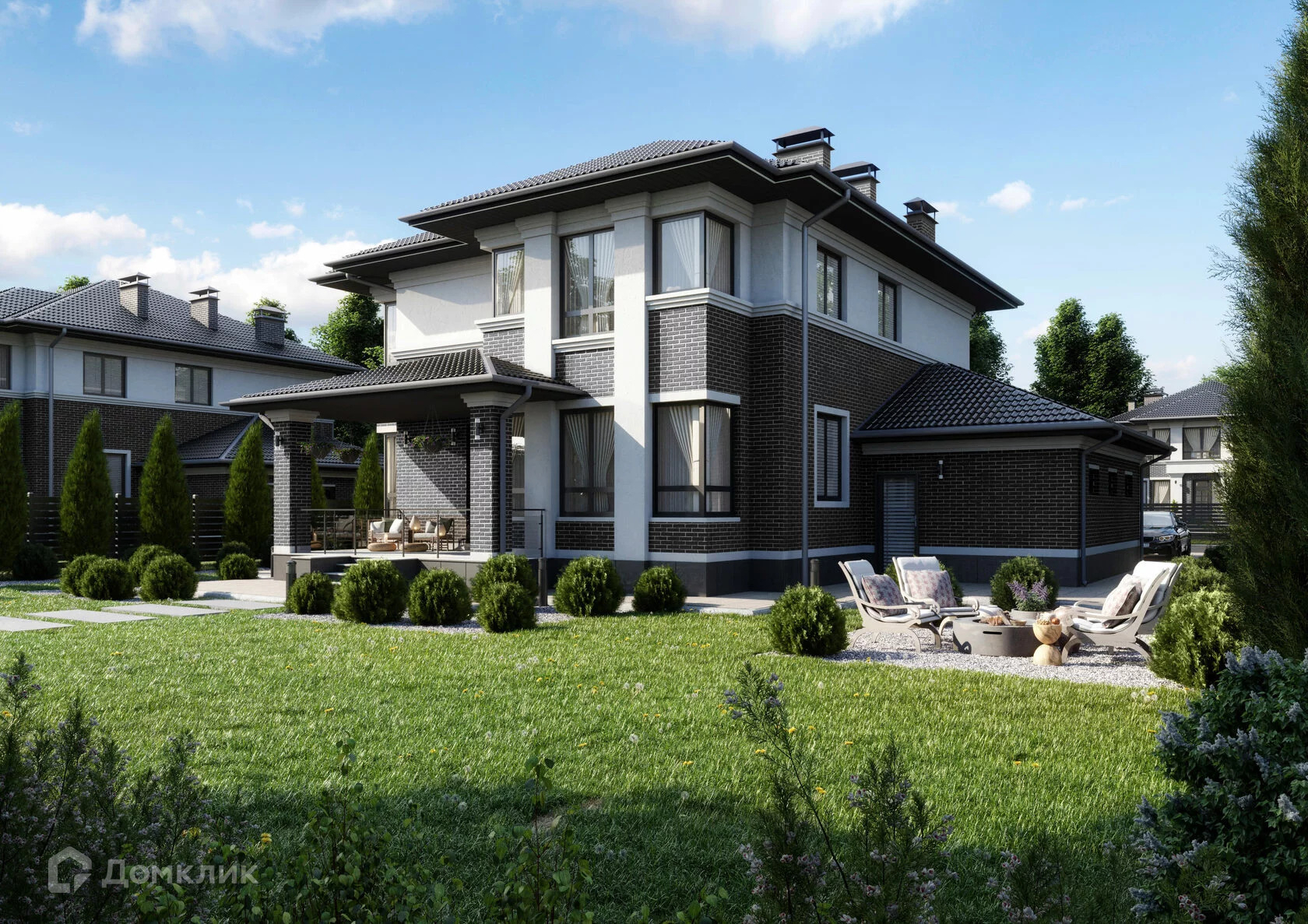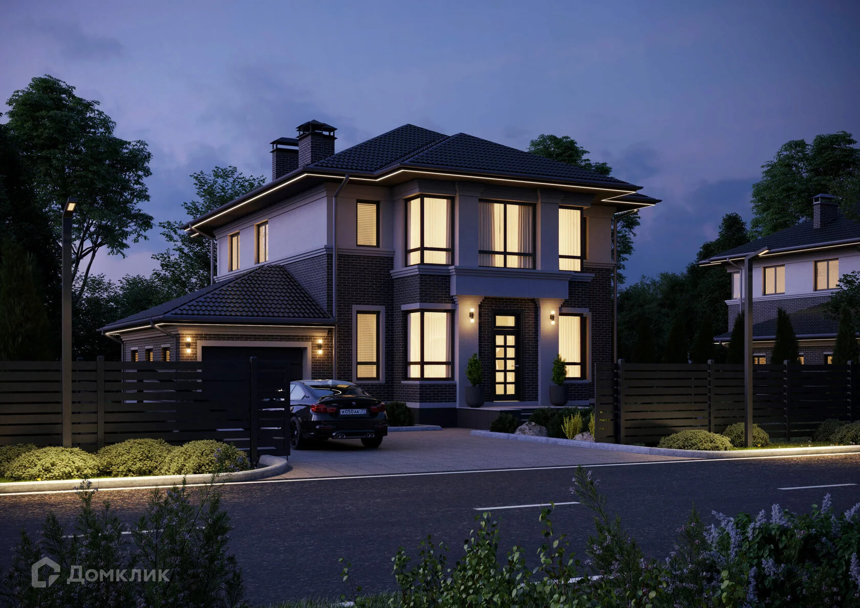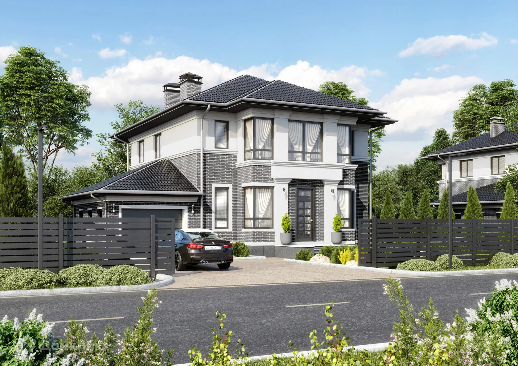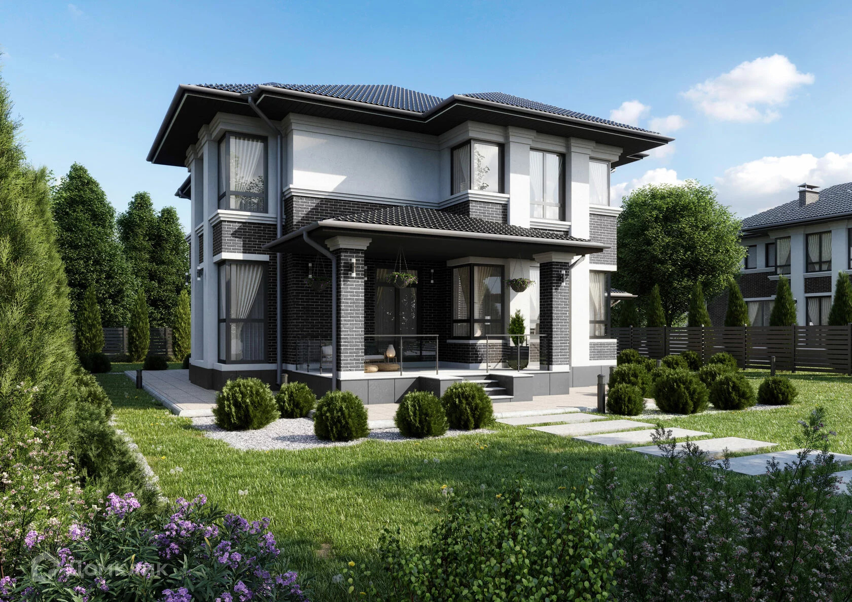 Просторный двухэтажный дом, который придётся по душе большой семье. Идеально подходит для комфортного проживания всей семьи, а также для частых встреч с друзьями. В доме много света за счёт больших панорамных окон, которые выходят сразу на две стороны.