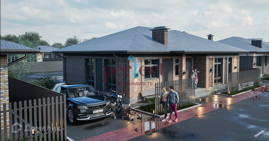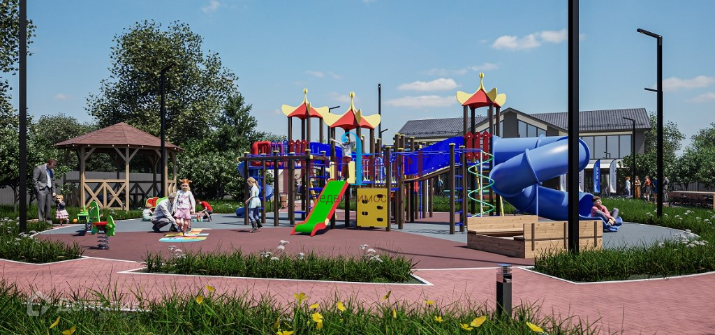 Перед каждым домом: · Парковка на 2 авто · Пешеходные дорожки из брусчатки