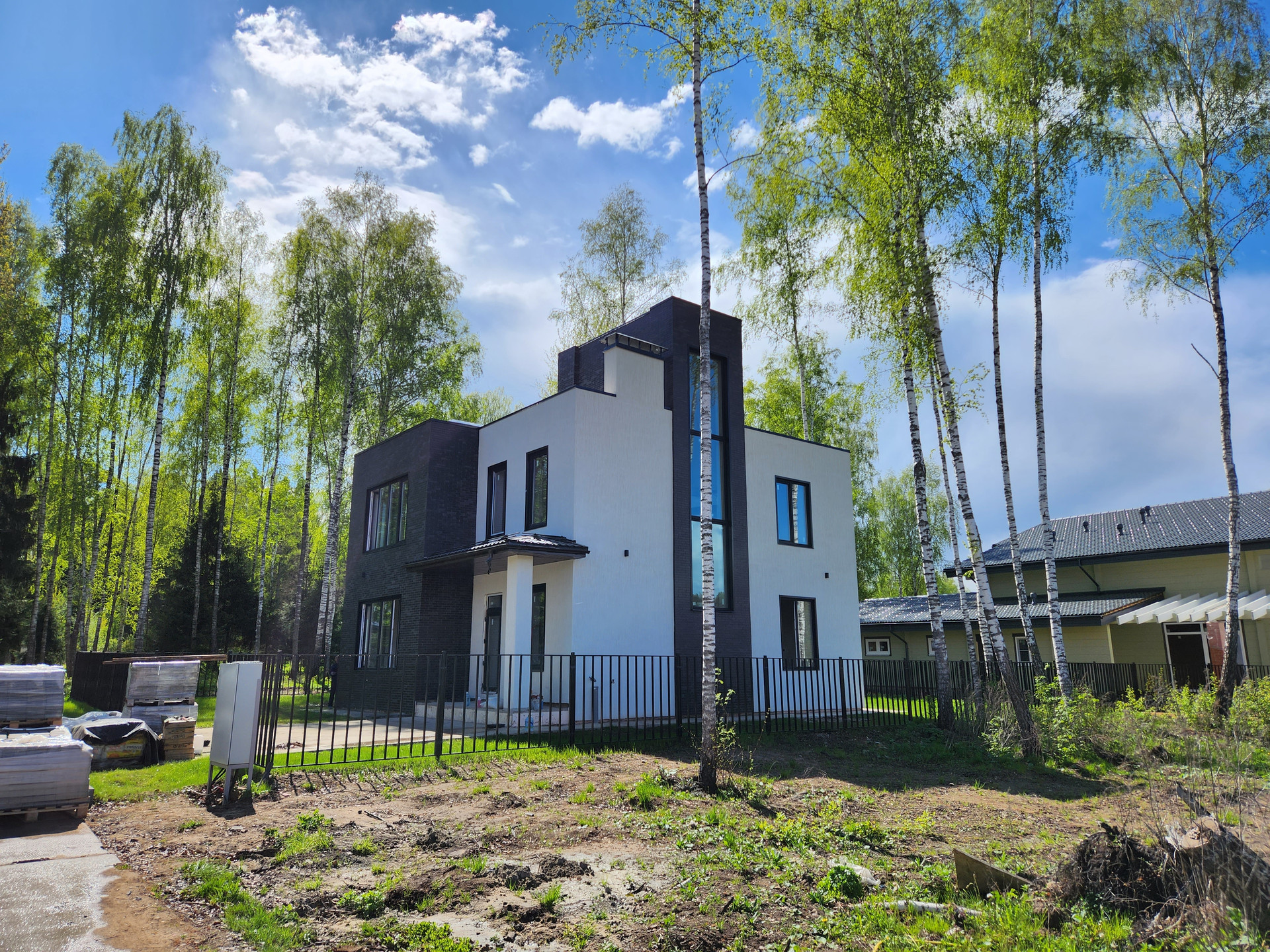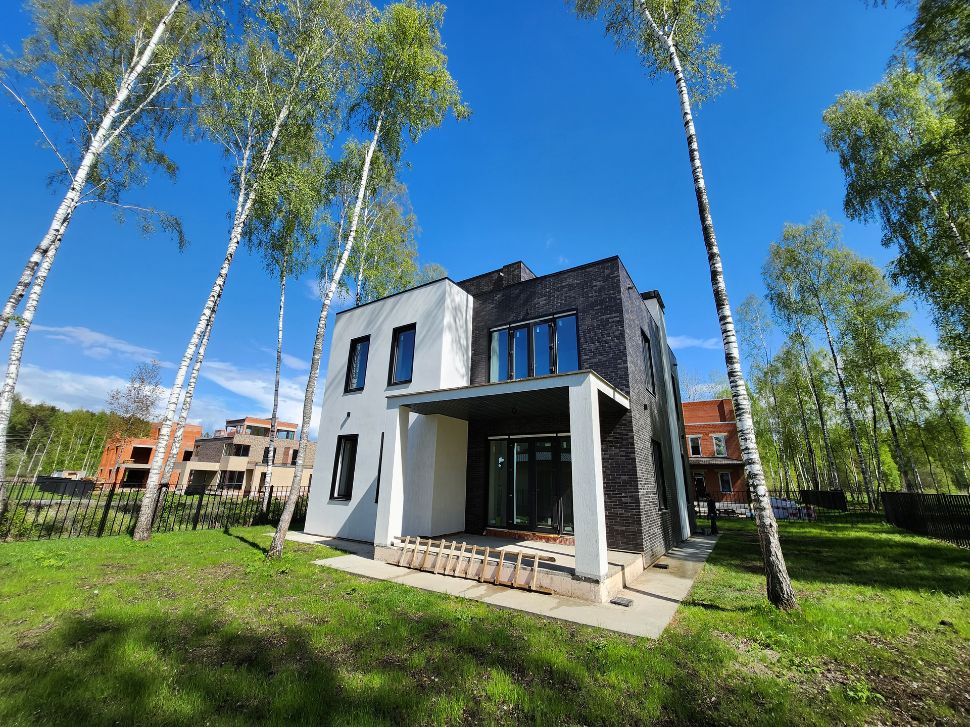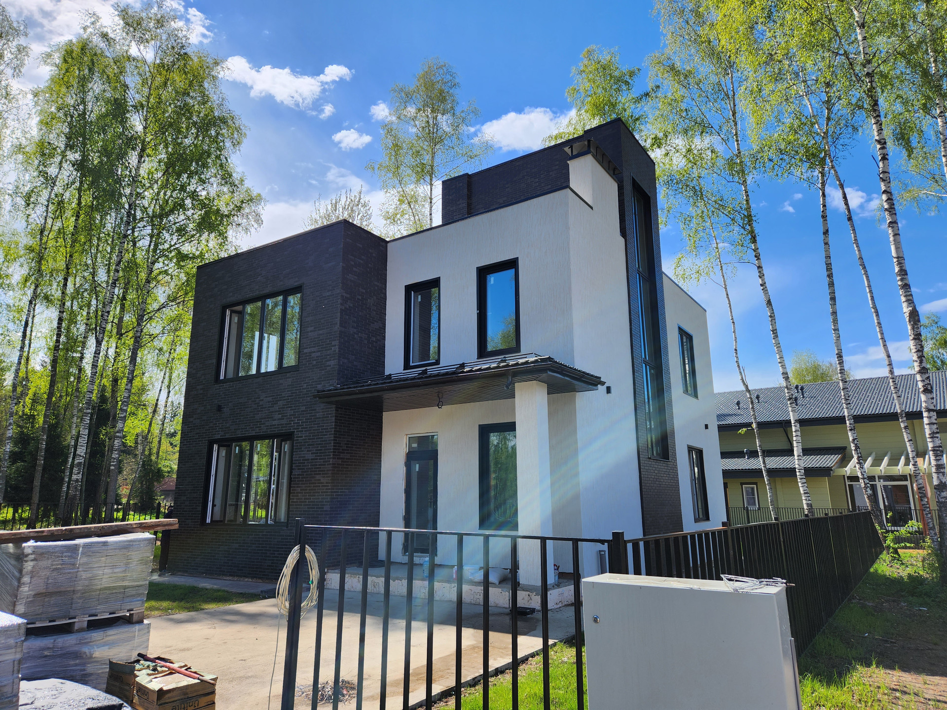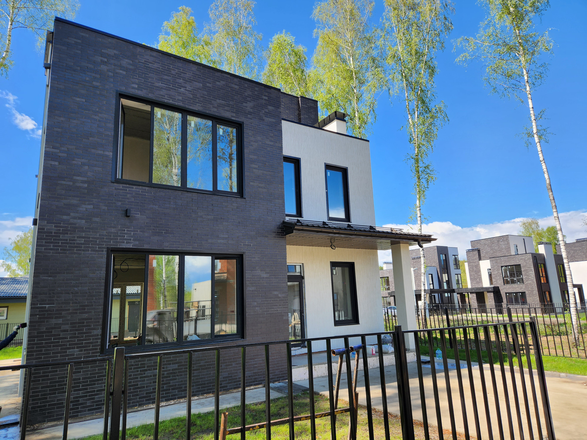 Дом построен из кирпича, фасад утеплён и облицован Немецким клинкером, отштукатурен и покрашен, в соответствии с проектом и дизайном. Выравнены стены, сделана стяжка, электро- и тепло-разводка по дому. Под чистовую отделку.