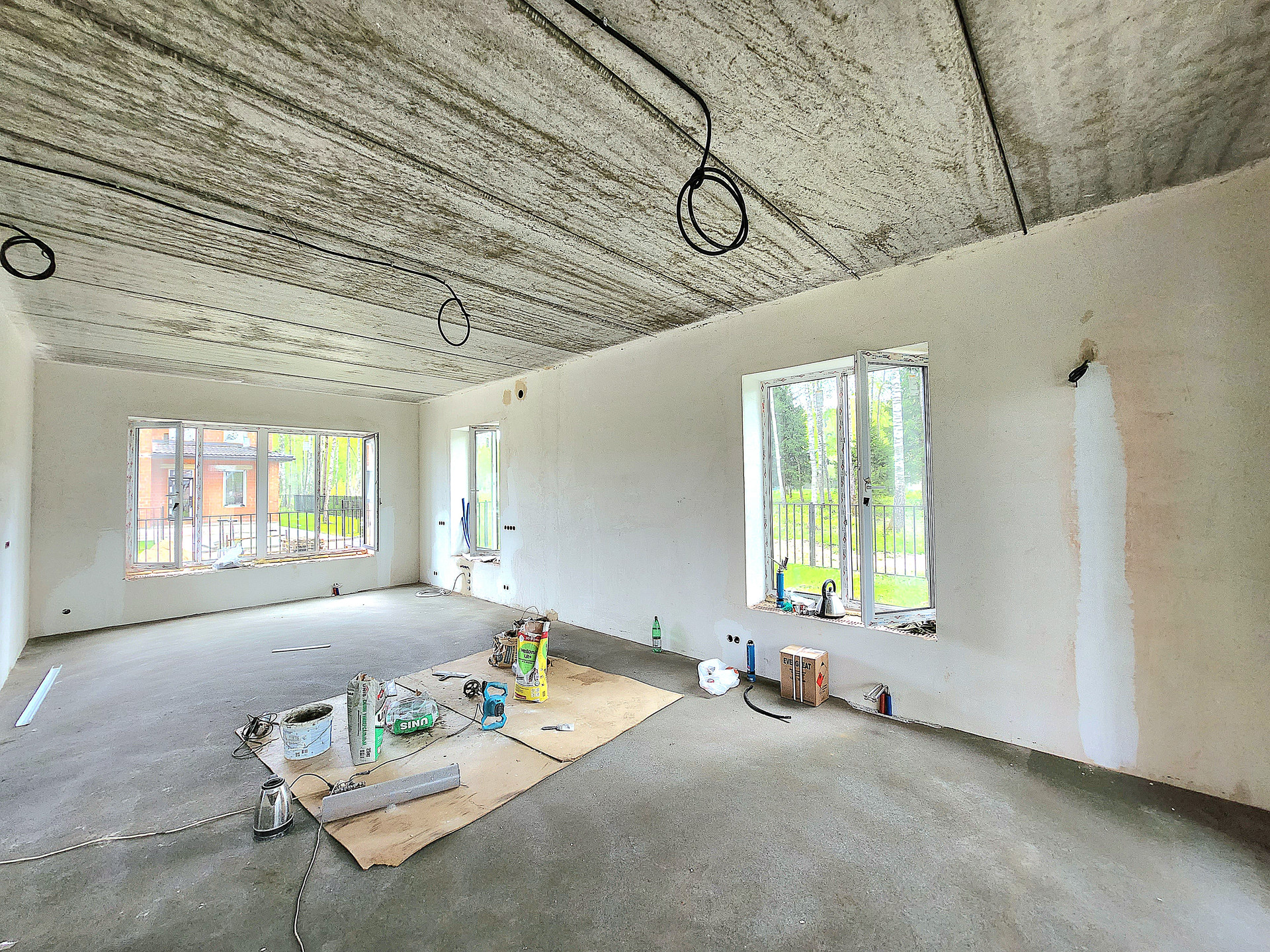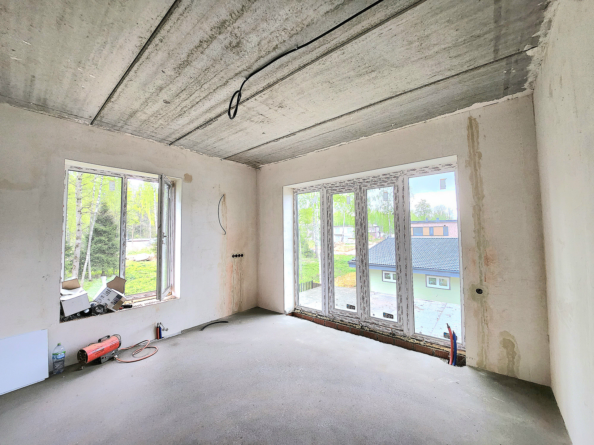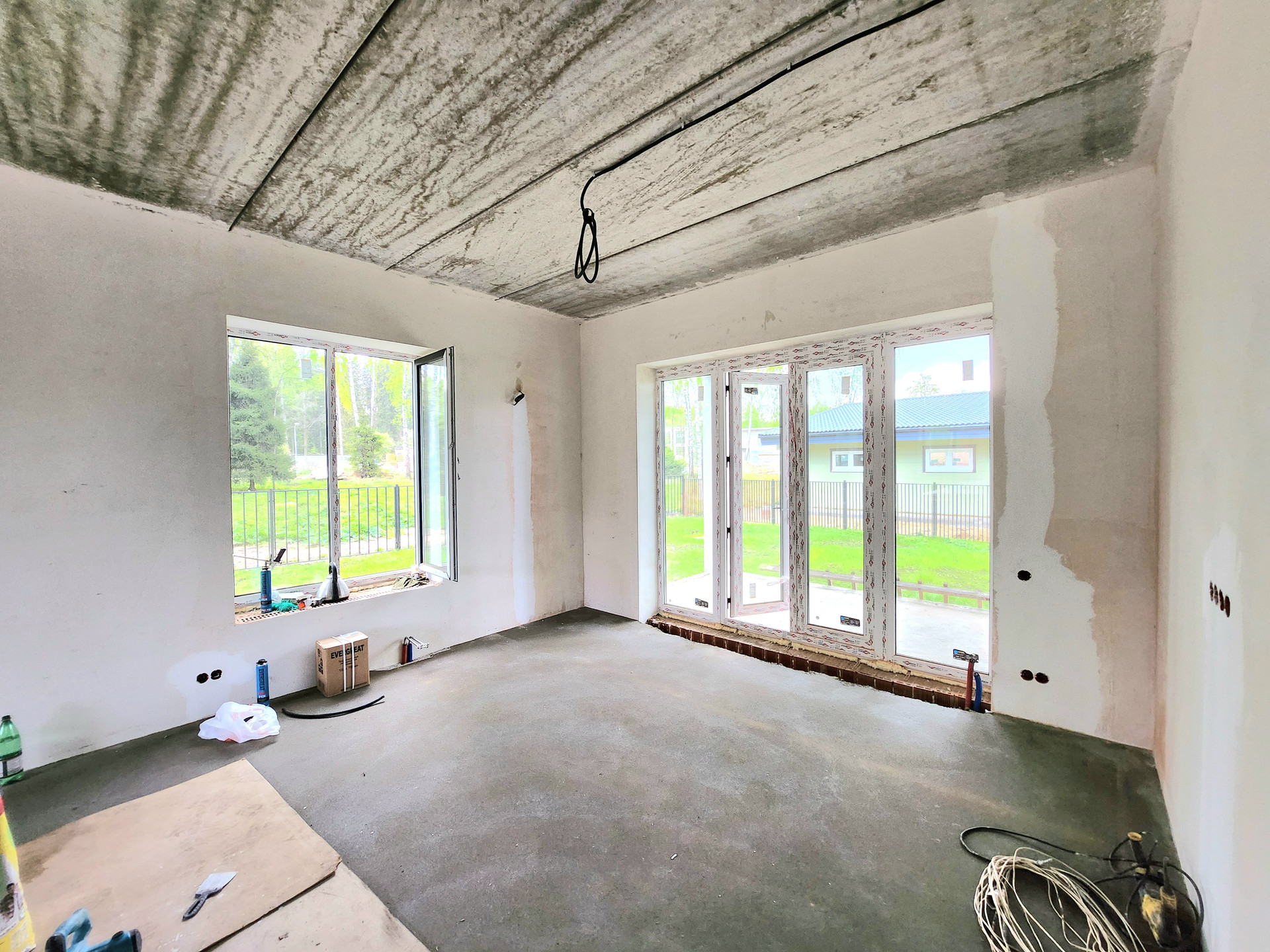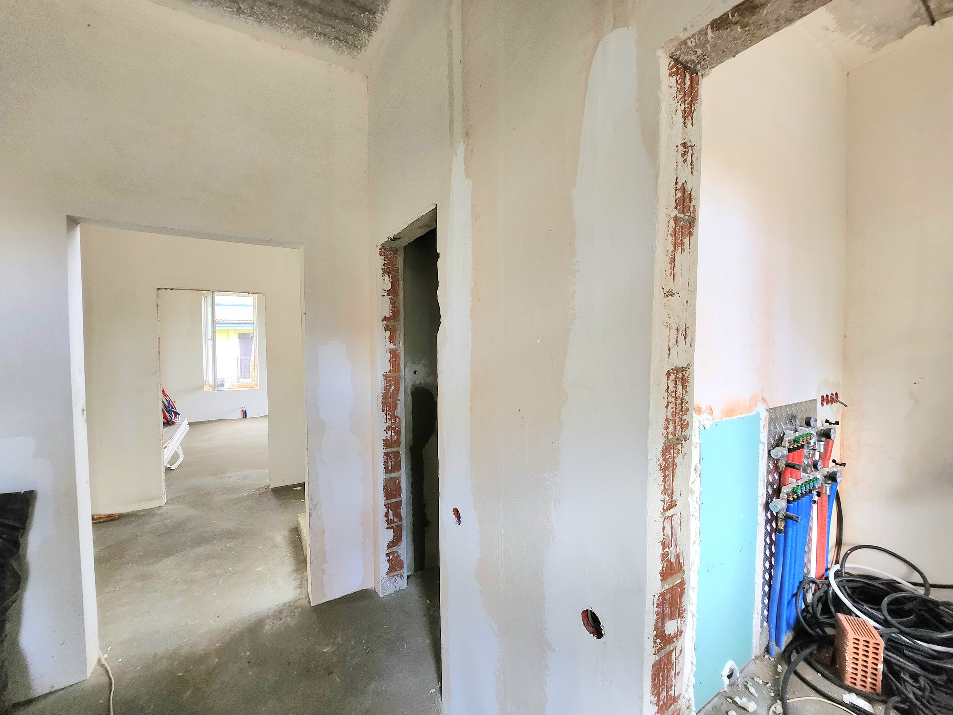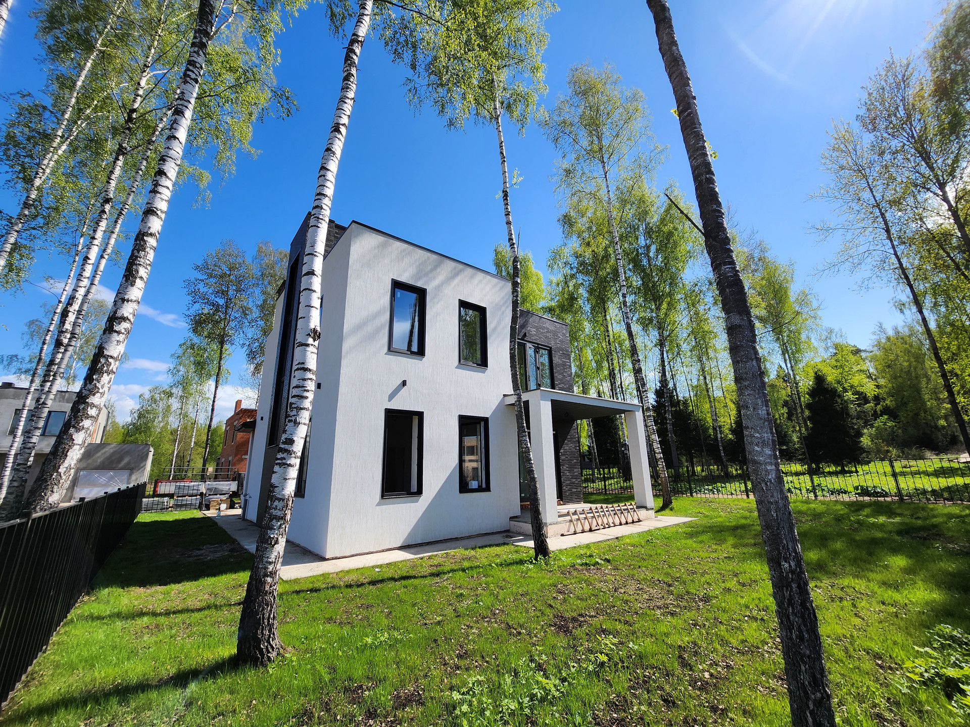 Дом построен из кирпича, фасад утеплён и облицован Немецким клинкером, отштукатурен и покрашен, в соответствии с проектом и дизайном. Выравнены стены, сделана стяжка, электро- и тепло-разводка по дому. Под чистовую отделку.