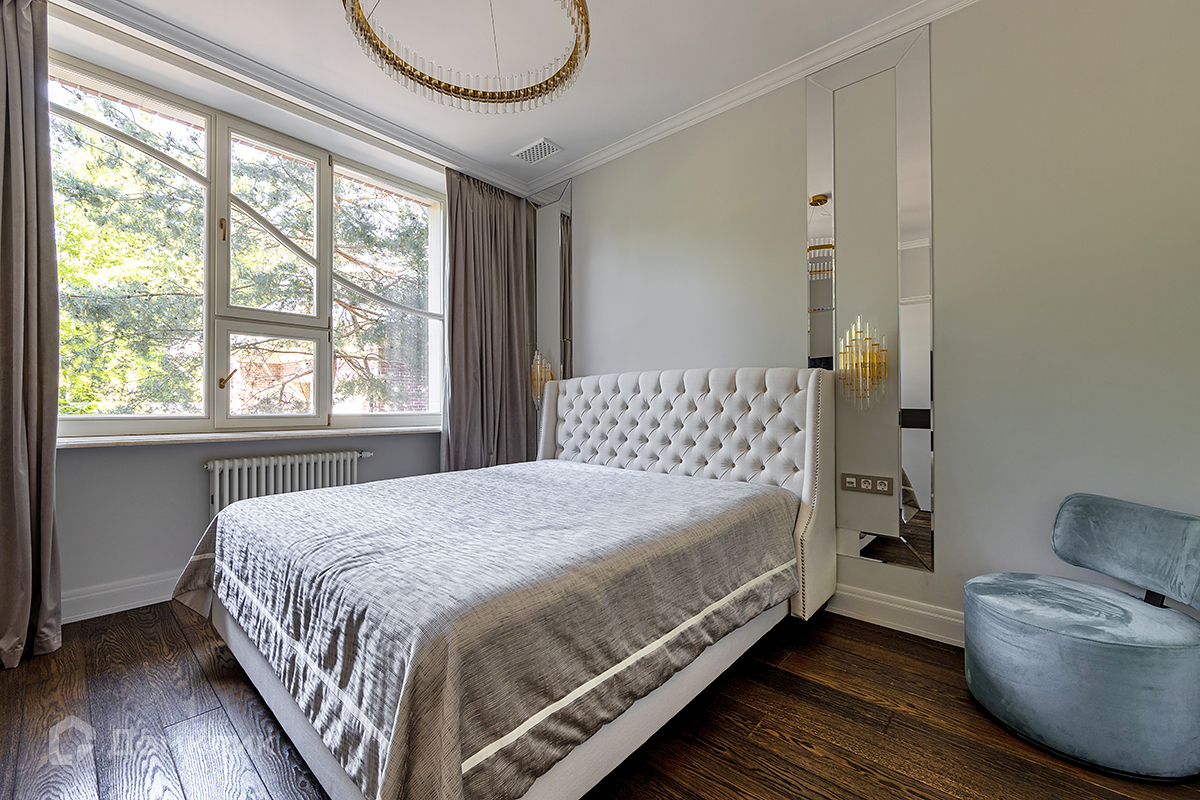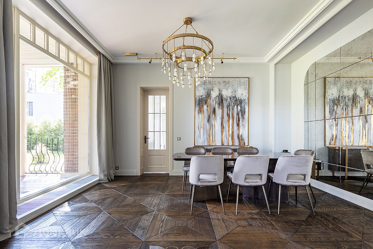Светлый уютный интерьер выполнен в стиле современной классики. В отделке и предметах интерьера использовались оригинальные материалы и сложные фактуры: натуральный камень, дерево, металл.
