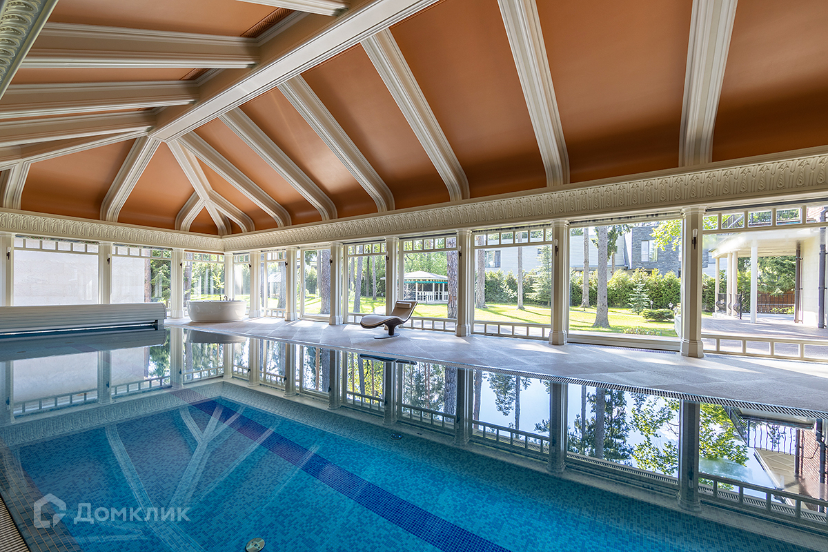 На участке дополнительно расположен гараж с квартирой для персонала. Зона отдыха перед бассейном и беседка BBQ. Русская баня. Украшением лесного участка служат декоративные и цветущие кустарники, плодовые деревья и шикарный газон.