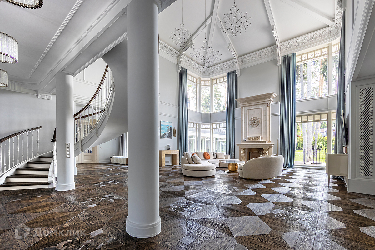 Лот №d214 В поселке Риита предлагается интересный дом с ажурными окнами, вторым светом, впечатляющей винтовой лестницей и камином из натурального камня. Дом имеет два этажа с центральным атриумом гостиной, которую отделили от остальных помещений витражными дверями. За ними в правом крыле расположились гардеробная, кухня, столовая и склад для хранения продуктов. С противоположной стороны — лаундж с музыкальной зоной, гостевая спальня, уголок с теннисным столом, бассейн, сауна и соляная комната. Приватный второй этаж занимают тренажёрный зал и три спальни с санузлами.
