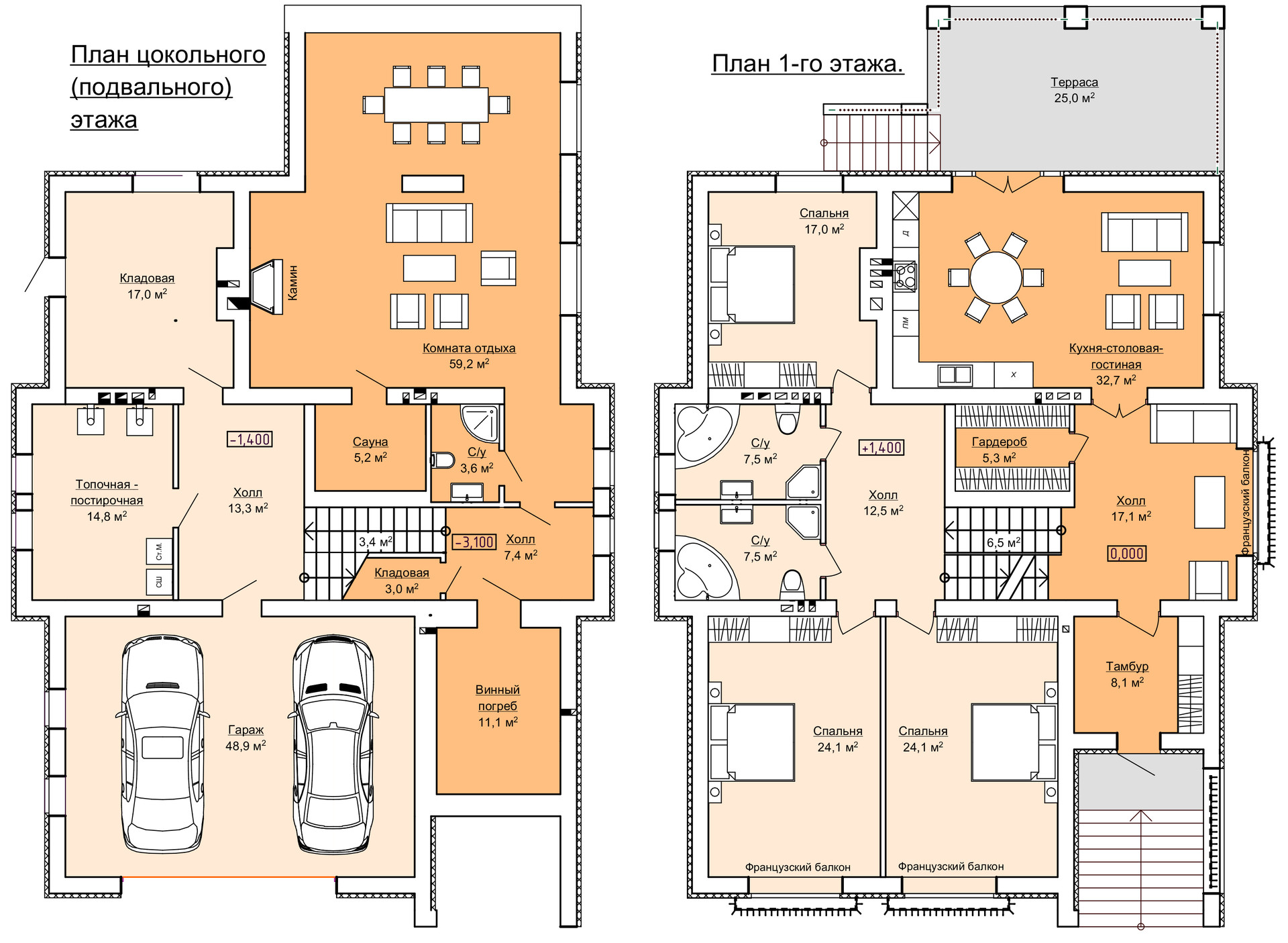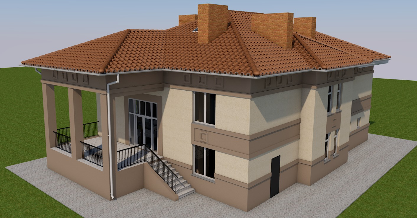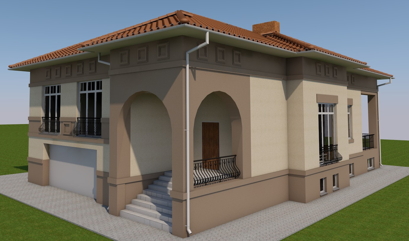 Шикарный одноэтажный дом, площадью 321 м2. «Средиземноморская» архитектура придает особняку незабываемый образ. Несомненным преимуществом данного проекта является «полутораэтажная» компоновка, позволившая разместить в одном уровне набор помещений двухэтажного дома. Проектом предусмотрены большая кухня-гостиная, холл и гардероб, отделенные от приватной спальной зоны одним лестничным маршем. С наступлением холодов владельцы дома смогут растопить камин или попариться в собственной сауне. Большой чердак может быть использован для сезонного хранения, например велосипедов, размещения вентиляционного и другого оборудования или превращён в жилую мансарду. Для удобства из кладовой цокольного этажа предусмотрен дополнительный выход на участок. В доме предусмотрен огромный встроенный гараж на два или три автомобиля.