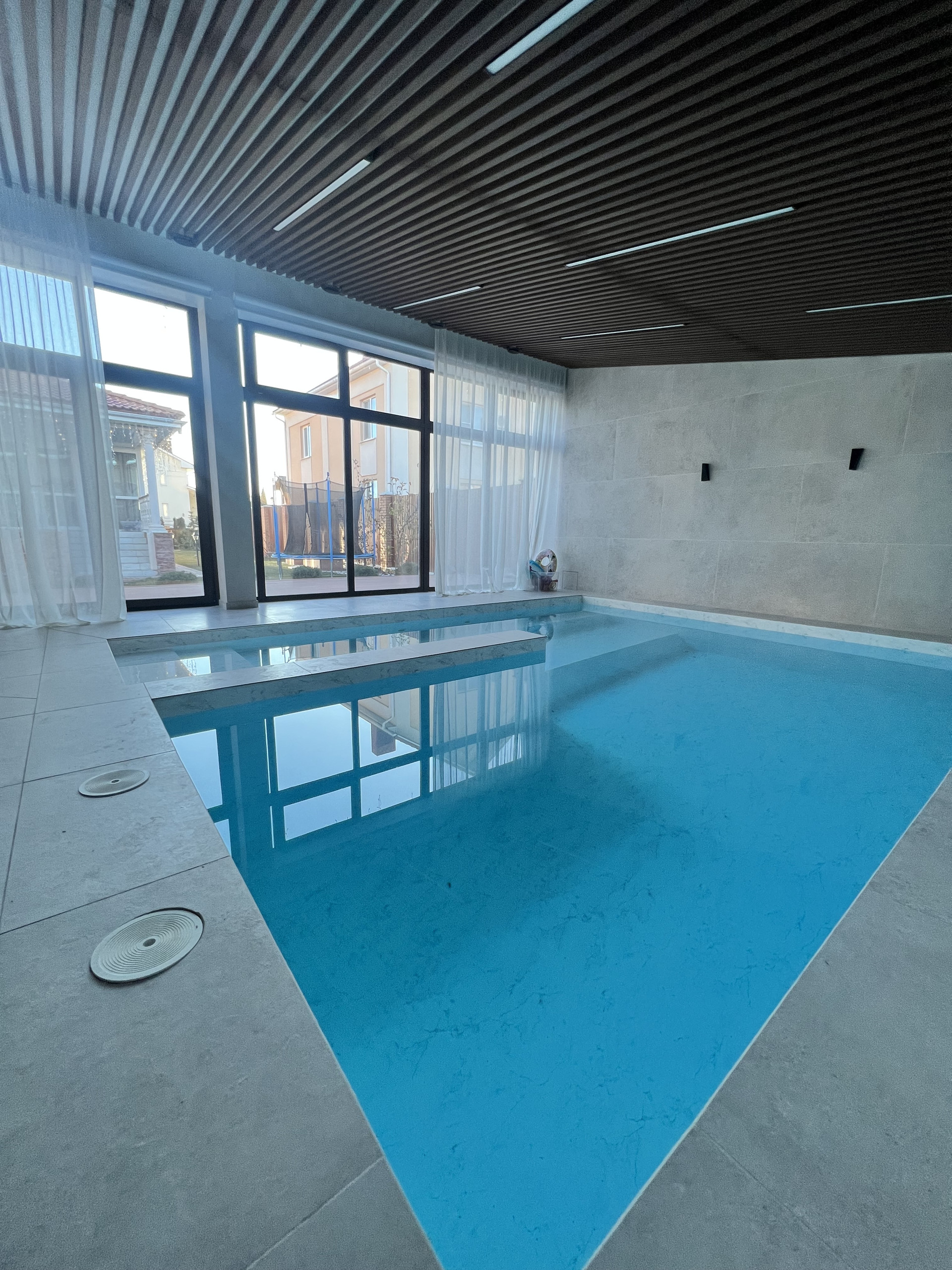 Обращаю внимание на очень удачное расположение дома внутри посёлка - далеко от шоссе, и недалеко от бассейна, спортивных и детских площадок. Летом для детей имеется возможность заниматься с тренерами теннисом, футболом и плаванием.
