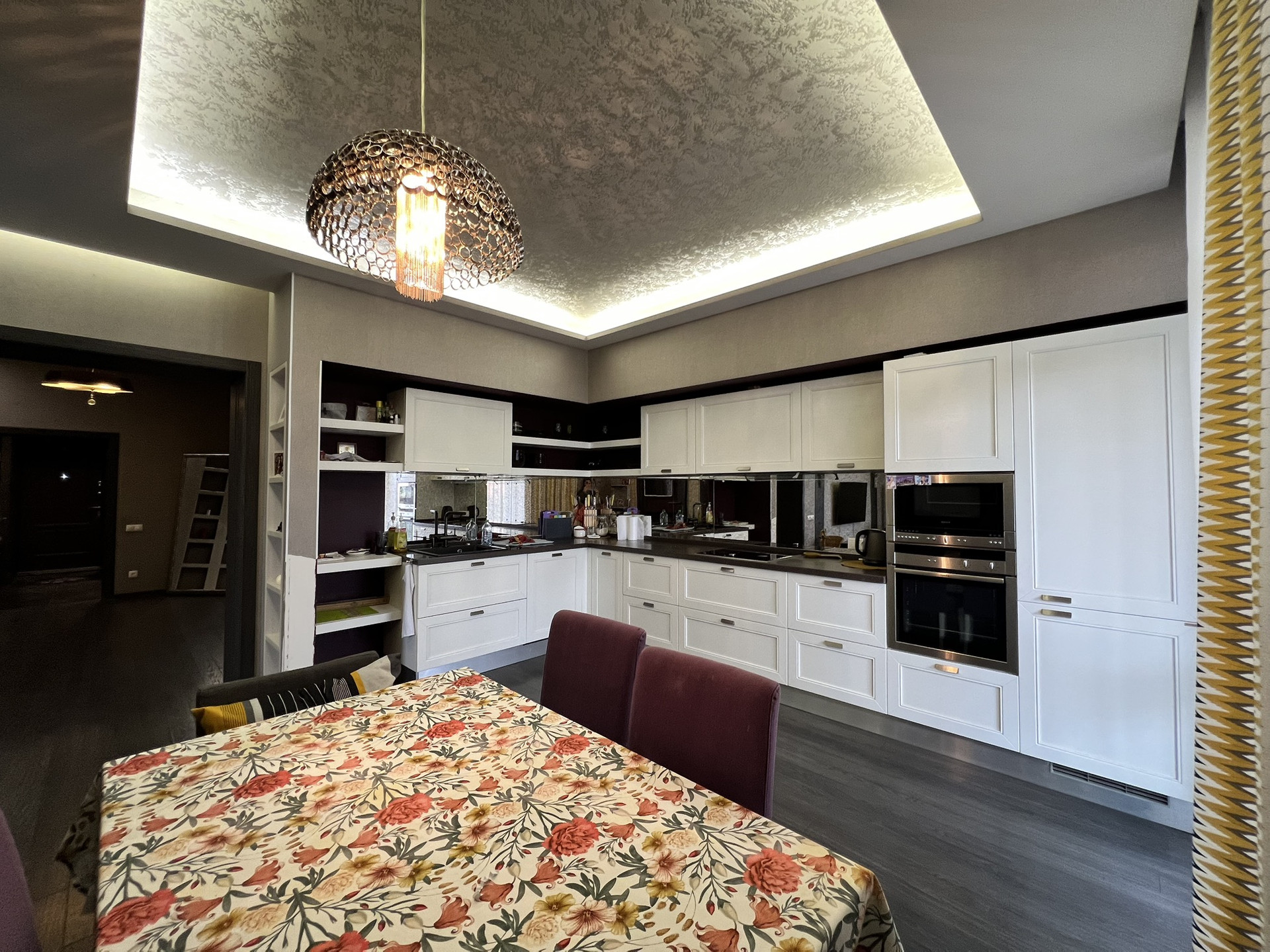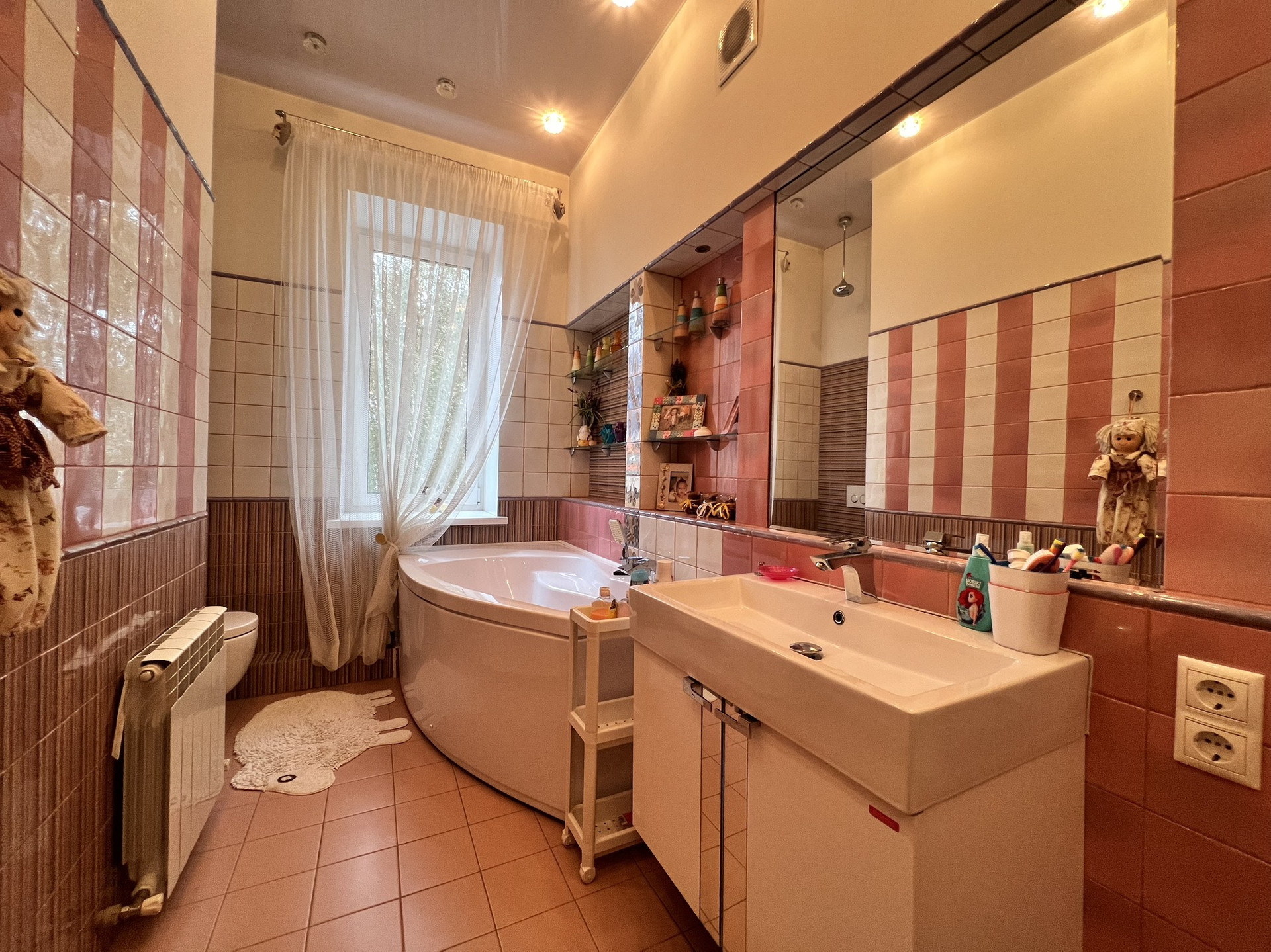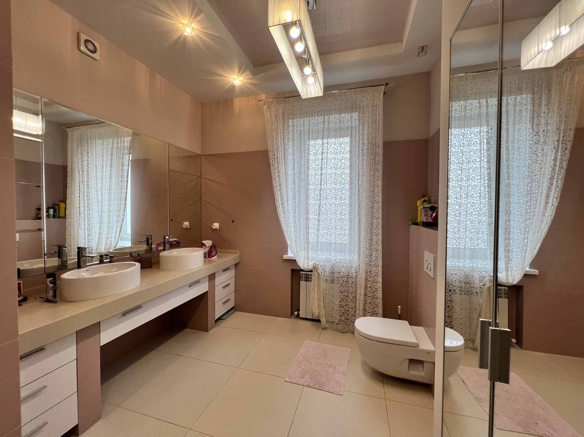 Ремонт был выполнен в 2014 году по дизайн-проекту с применением дорогостоящих материалов и техники, установлено высококачественное газовое и водяное оборудование. В цокольном этаже имеется прекрасная парилка с сауной. Гараж на два авто. На данный момент местами требуется небольшой косметический ремонт.