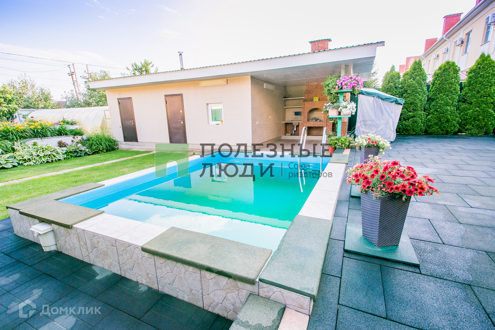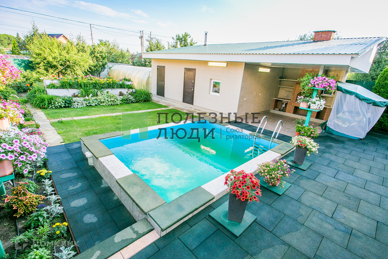 И "фишка дома" - садовый участок с классной баней, бассейном, зоной барбекю и садом. Трудно это достойно описать, поэтому посмотрите фотографии и видео...