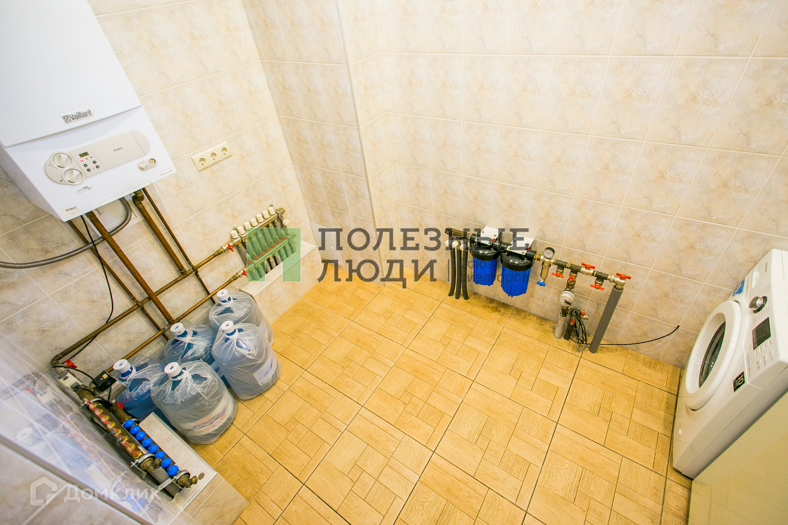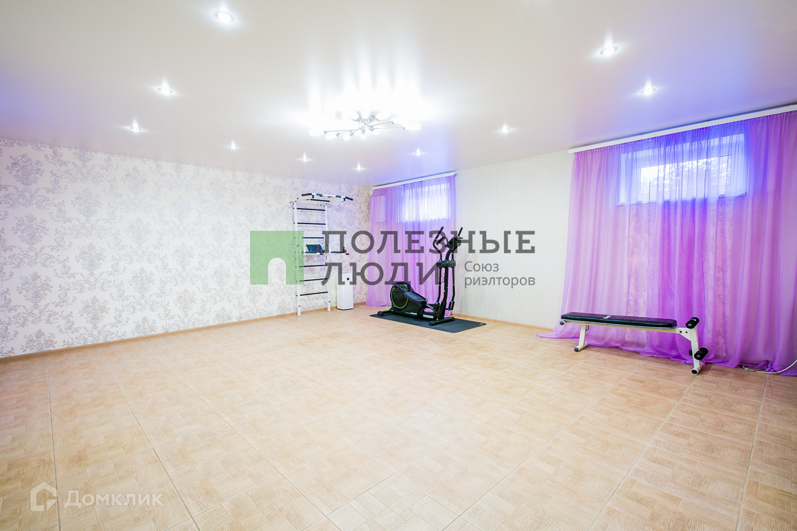 В цокольном этаже находятся просторное помещение 42,7 кв. м, где оборудован спортзал. Техническая комната, где находятся двухконтурный газовый котел, водяные фильтры, стиральная машина. А также подсобное помещение для хозяйственных нужд.