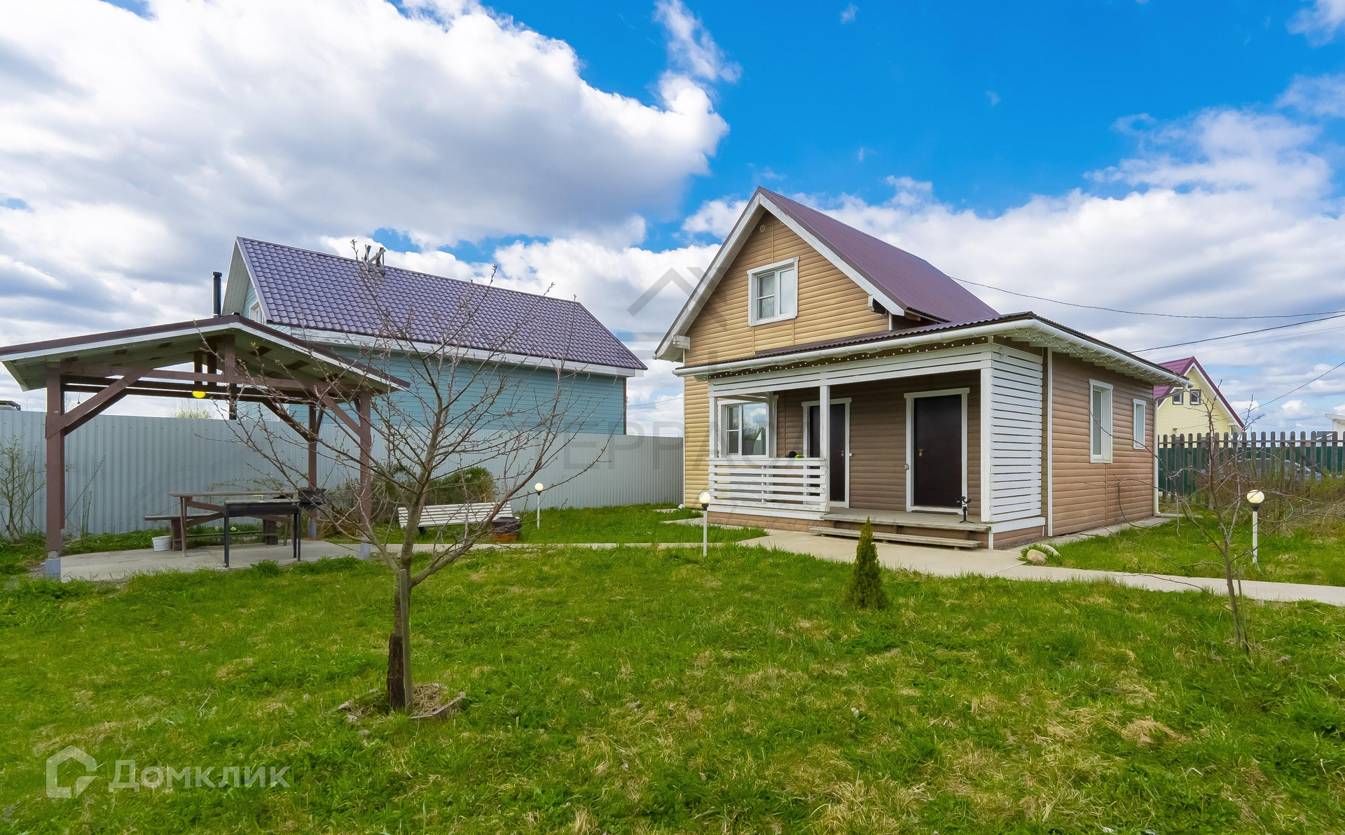 По периметру огорожен забором из профилированного листа и фасадного дерева.
