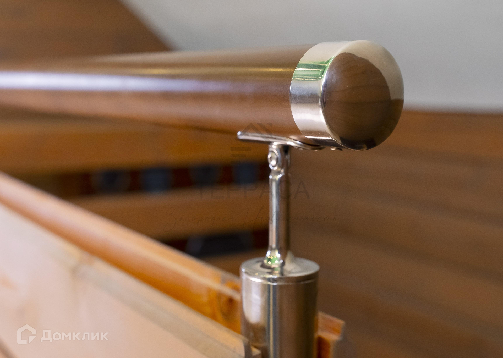 Лестница – на ломаном косоуре из натуральных материалов, выполнена в современном стиле.