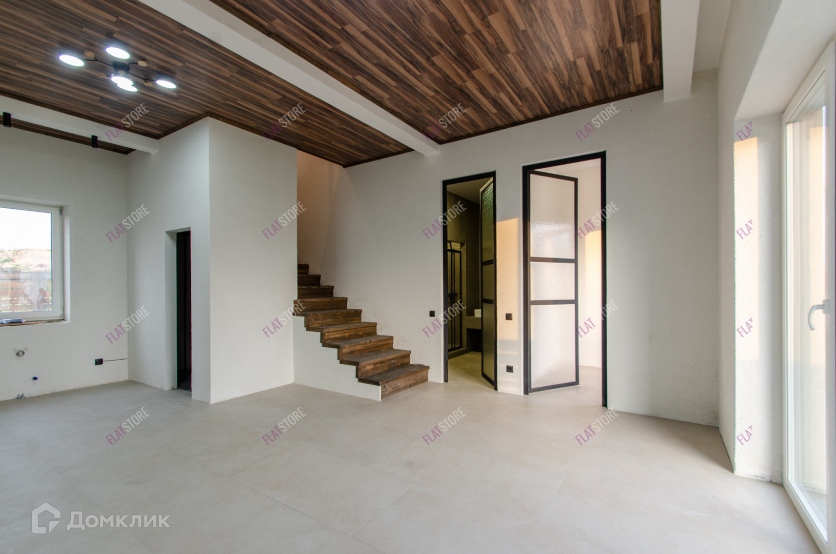 Отделка выполнена в современном стиле. Планировка дома: отдельно сзади дома - технический узел, основная гостиная с небольшой прихожей зоной, санузел на первом этаже, место под лестницей. Панорамные окна для выхода на террасу/двор. Второй этаж: санузел и три отдельные спальные комнаты.
