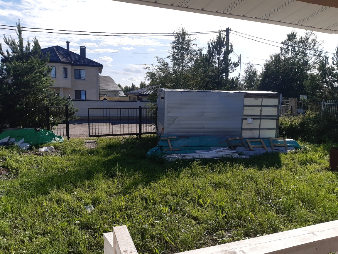 На участке также стоит бытовка для рабочих 2,5х4м