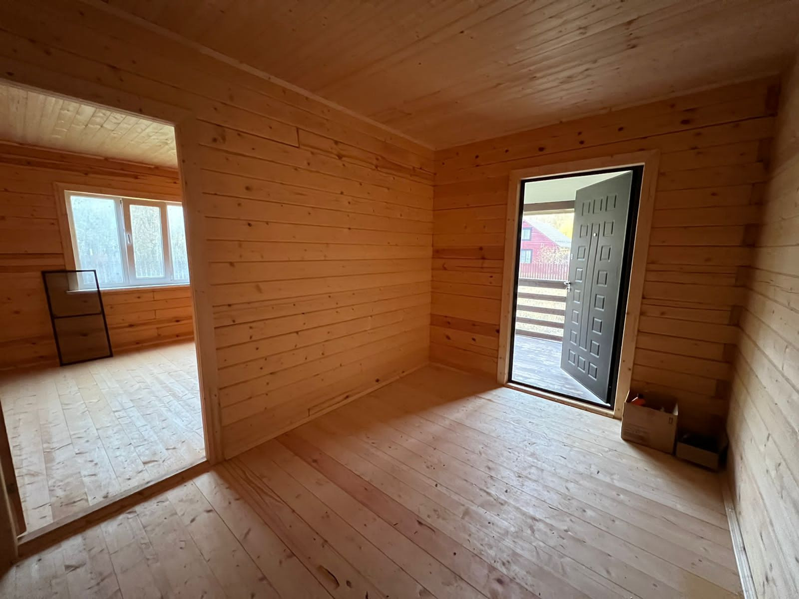 Планировка дома: прихожая, кухня-гостиная, 2 спальни, санузел и котельная с отдельным входом.