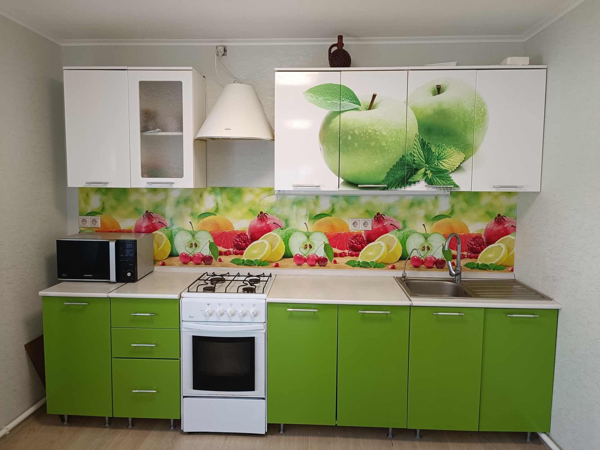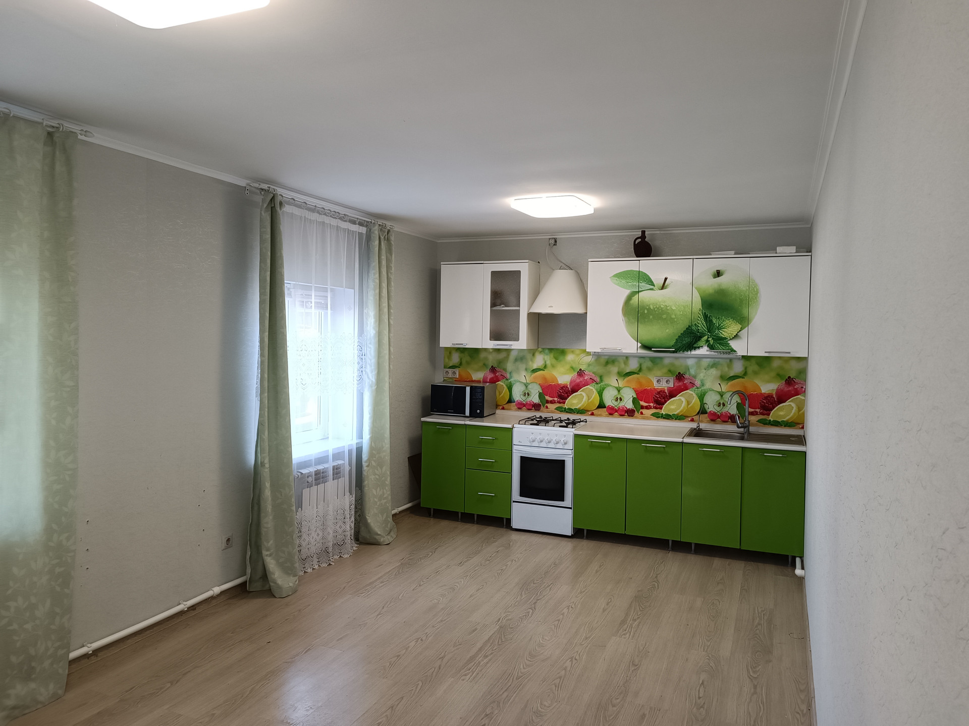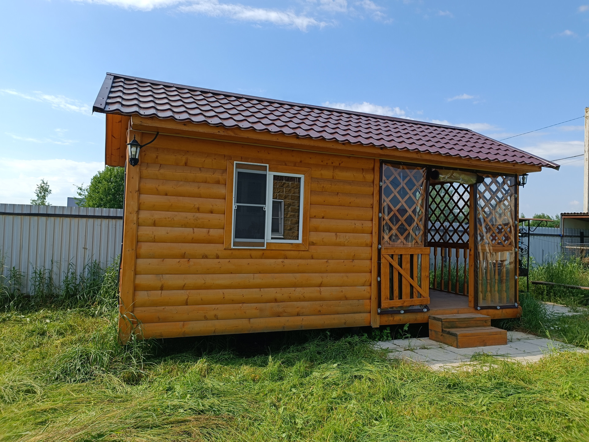 Летняя кухня с беседкой, закрыта мягким стеклом. В беседке горячая/хол. вода, газ.