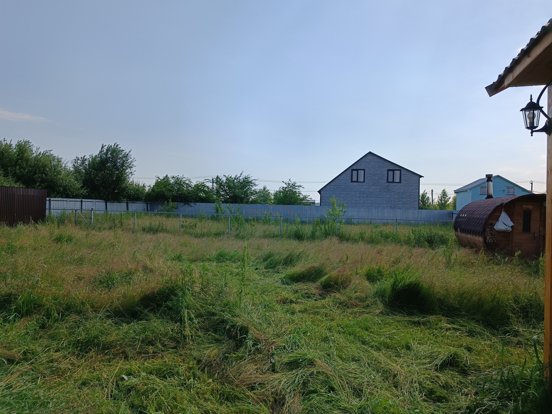 Молодой огороженный сад (яблони, груша, слива, черешня, калина, вишня, малина, смородина, крыжовник, ирга, черноплодная рябина, жимолость).