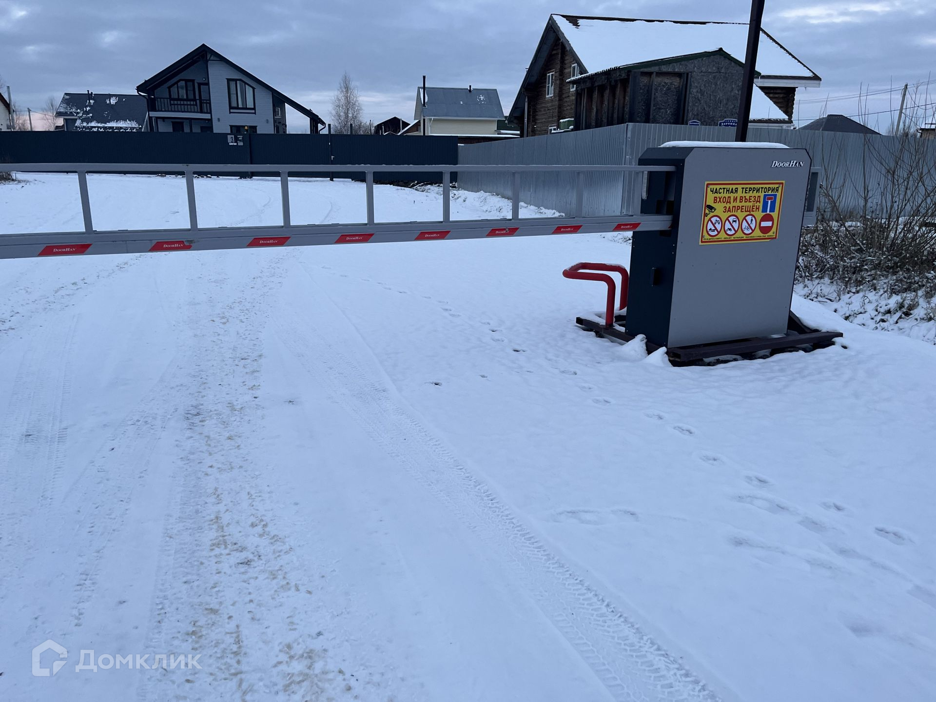 Дорога до участка из асфальтной крошки, дороги чистятся, на въезде имеется автоматический шлагбаум.