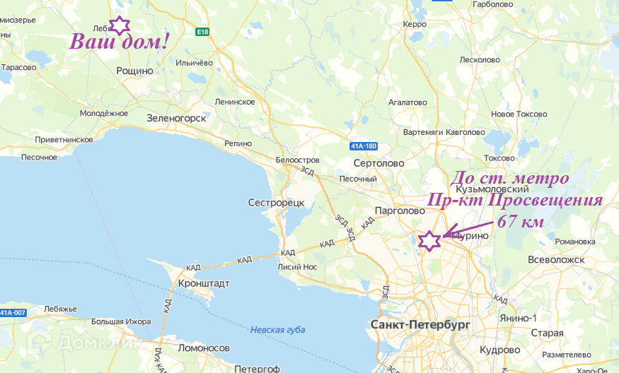 Рядом лес, богатый грибами и ягодами, В 10 -15 минутах ходьбы пешком – супермаркет Магнит, и чистейшие озера для рыбалки и купания. Поселок выгодно расположен, с удобной транспортной доступностью – пос. Рощино 6 км., в 5 км трасса Скандинавия. От метро Парнас прямая маршрутка № 679 прямо до поселка. Расстояние до КАД от поселка 58 км - на авто менее часа. От Финляндского вокзала и от метро Удельная можно добраться до жд. ст. Рощино и далее на 125 или 679 автобусе.