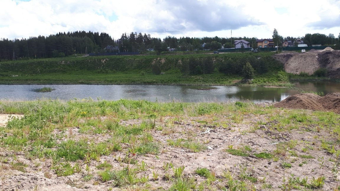 Участок в собственности, отмежеван, правильной формы 26 х 30м на берегу пруда, с панорамным видом на лес.