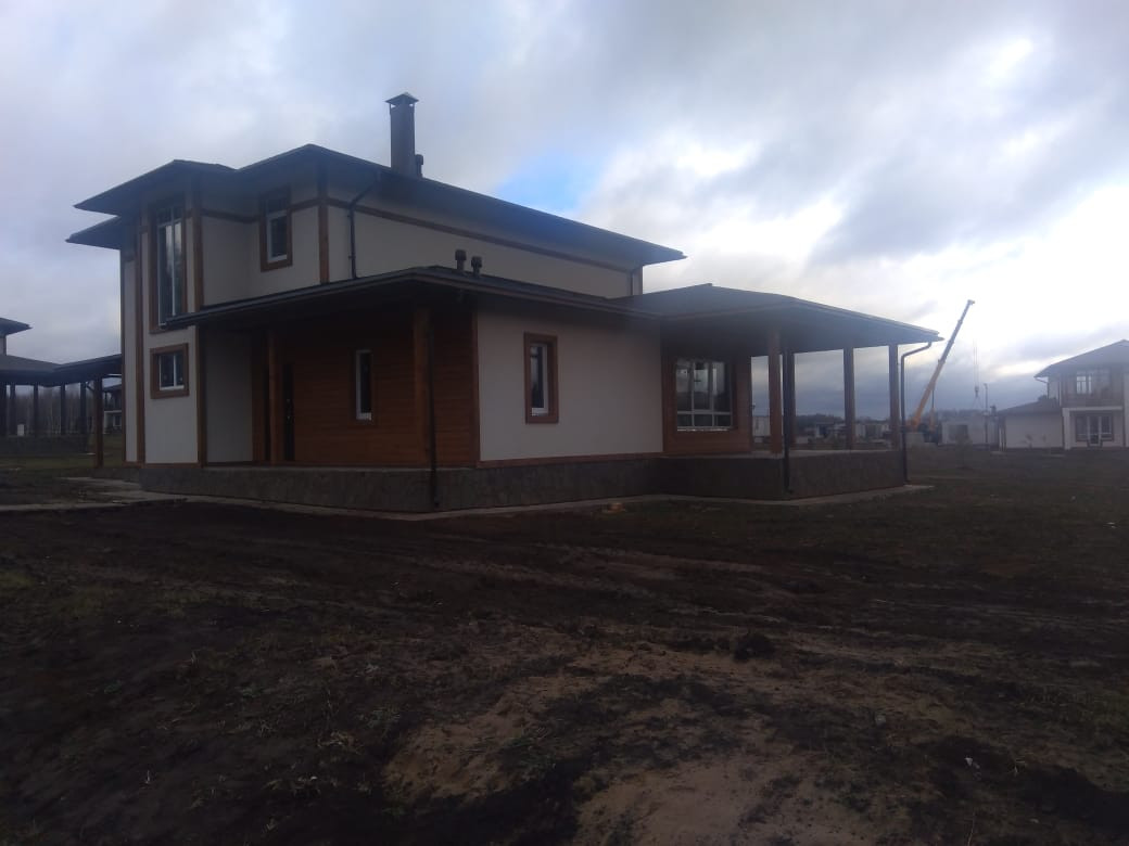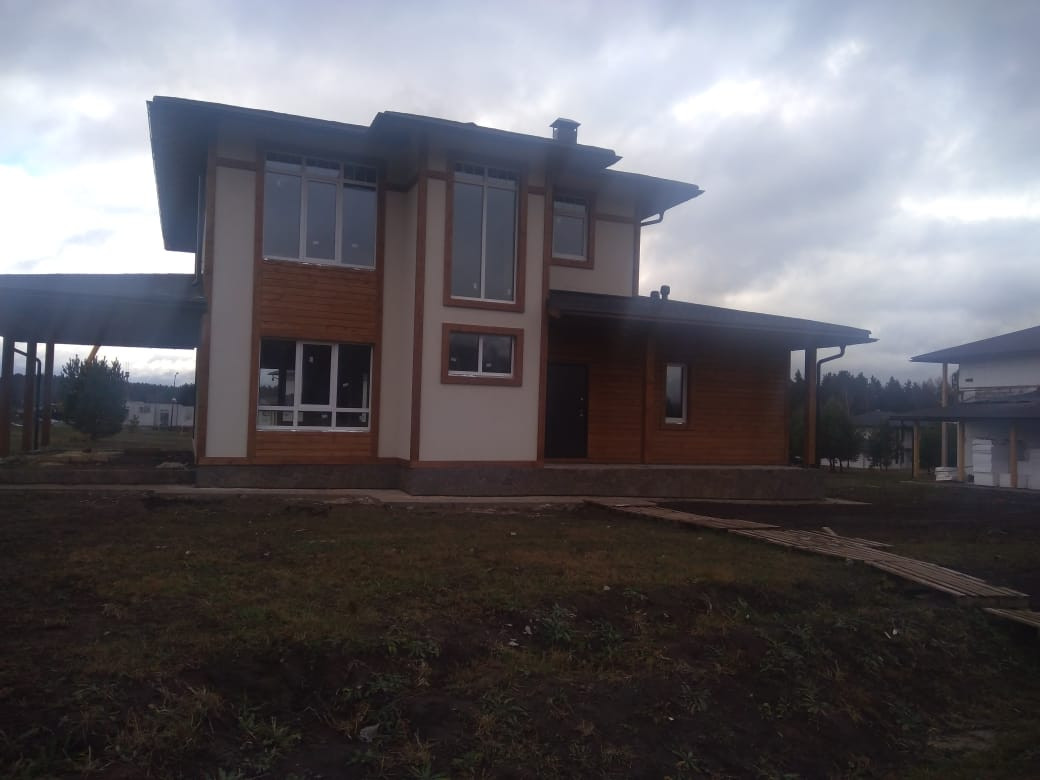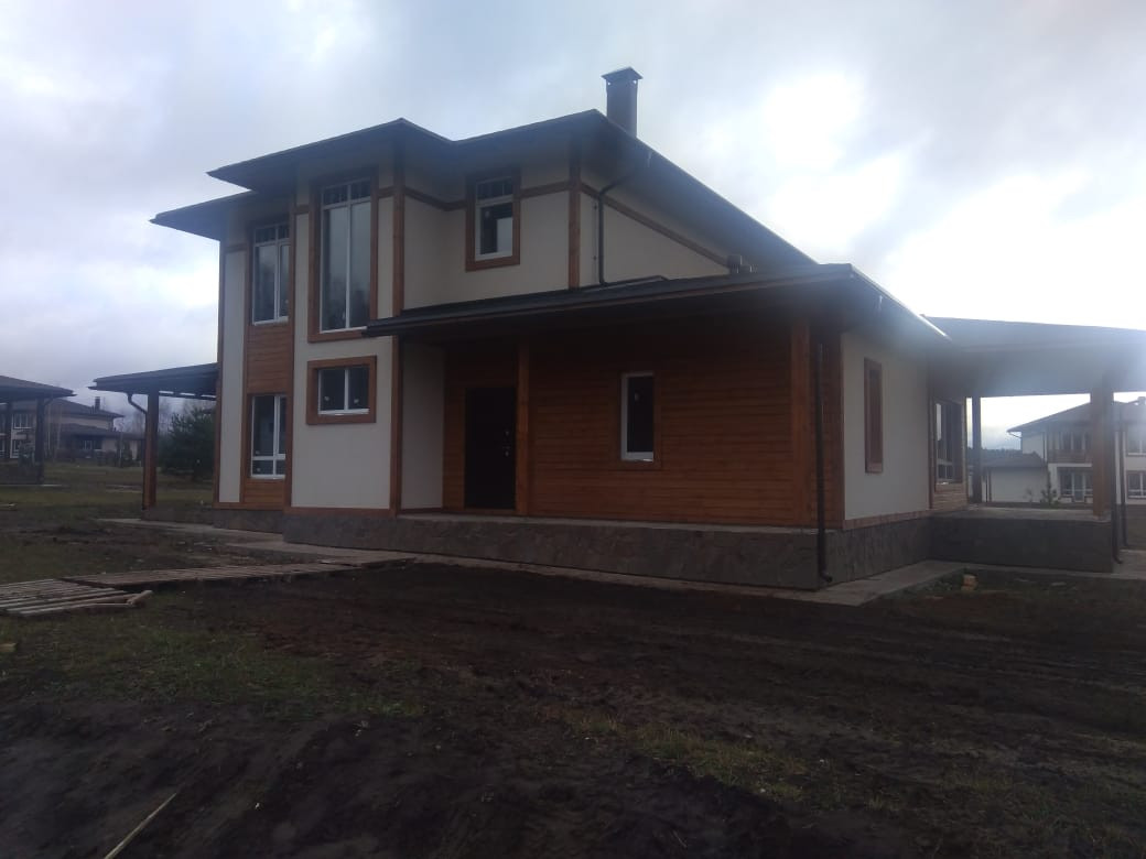 Дом № 494 в Коттеджном поселке Рождествено (квартал Капитанская Бухта), дом построен на серьезном бетонном фундаменте, стены: 1 этаж ж/б панели, 2 этаж - пеноблок (300 мм), межэтажные перекрытия - ж/б плита. Окна  и балконные двери – ПВХ 2-х камерные, профиль 70, кровля - мягкая черепица Shinglas. Выполняется фасадная отделка дома в наружным утеплением, штукатуркой и покраской стен и устройством декоративных элементов  (русты, наличники, декоративные рамки), выполнены отмостка вокруг дома, отделка цоколя натуральным камнем, по краям кровли установлена водосточная система. К дому подведены все центральные коммуникации ( газ, электричество, водоснабжение, центральный канализационный коллектор). Дом построен по проекту "Арктика 3" (см. фото поэтажных планов). Планировка этого проекта включает в себя  5 спален, 3 санузла, просторную кухню-гостиную с выходом на огромную крытую террасу, удобные места хранения (гардеробные) и подсобные помещения (котельная и холл). К дому пристроен навес для автомобиля. Дом находится в застроенной части квартала Капитанская Бухта ( последней, 5-й очереди легендарного поселка Рождествено).