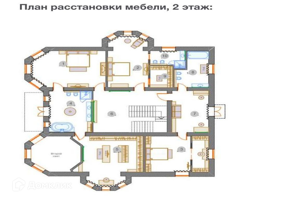 — 5 просторных спален, каждая с гардеробом и санузлом, наличие рабочей кухни.