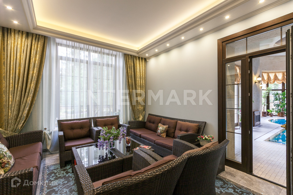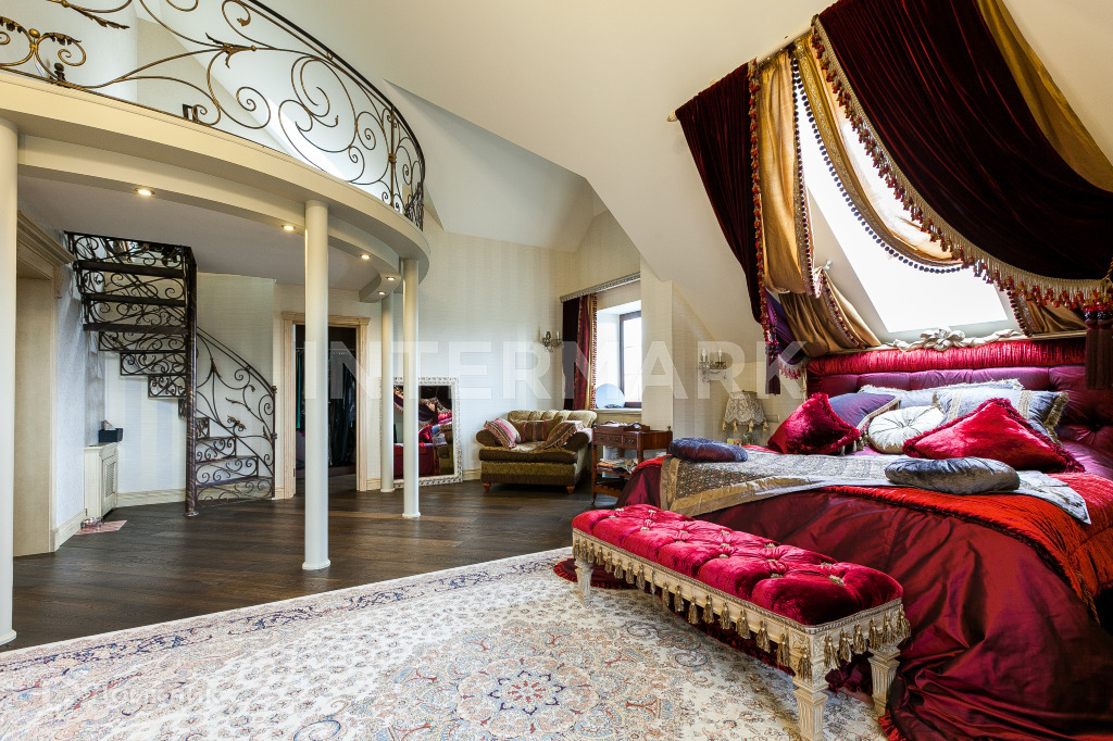 ID 3987. Показ в любое время! Предлагаем приобрести дом в поселке Рублевский. Поселок расположен на Рублево-Успенском шоссе в 15 км от МКАД. Общая площадь дома 1600 кв.м. В доме выполнена отделка под ключ. Планировочным решением предусмотрено 2 этажа, 4 уровня, 5 спален. Планировка дома: цоколь - холл, бильярдная, 2 подсобных помещения, котельная, кладовая; 1 уровень - холл, гардеробная, гостиная с камином, столовая с выходом на террасу, кухня, spa зона: бассейн, сауна, джакузи, хамам, комната для массажа, косметологический кабинет, спальня; 2 уровень - холл, главная спальня с ванной комнатой и гардеробной, 2 детские спальни, 2 с/у, гардеробная, 2 спальни, каждая с с/у и гардеробными, комната персонала с кухней,тренажерный зал, галерея; мансарда - холл, 2 спальни, кладовая, оборудован лифт, кабинет, бильярдная, библиотека. Дом расположен на участке общей площадью 23 соток. Территория благоустроена: есть ландшафтный дизайн. Дом оснащен комфортной SPA-зоной с бассейном и сауной. В коттеджном поселке Рублевский современные инженерные коммуникации: газоснабжение - магистральное, подведено электричество, водоснабжение - централизованное, канализация - центральная.