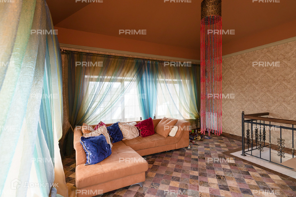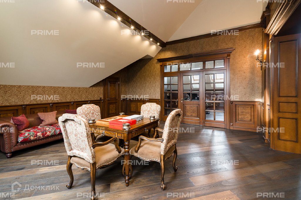 Богатые интерьеры, внутренняя отделка, дорогая мебель, функциональное 2-х уровневое освещение, красивые половые покрытия, антресоль с резными перилами, красивая лестница и лифт - все подчеркивает безупречный вкус владельца.