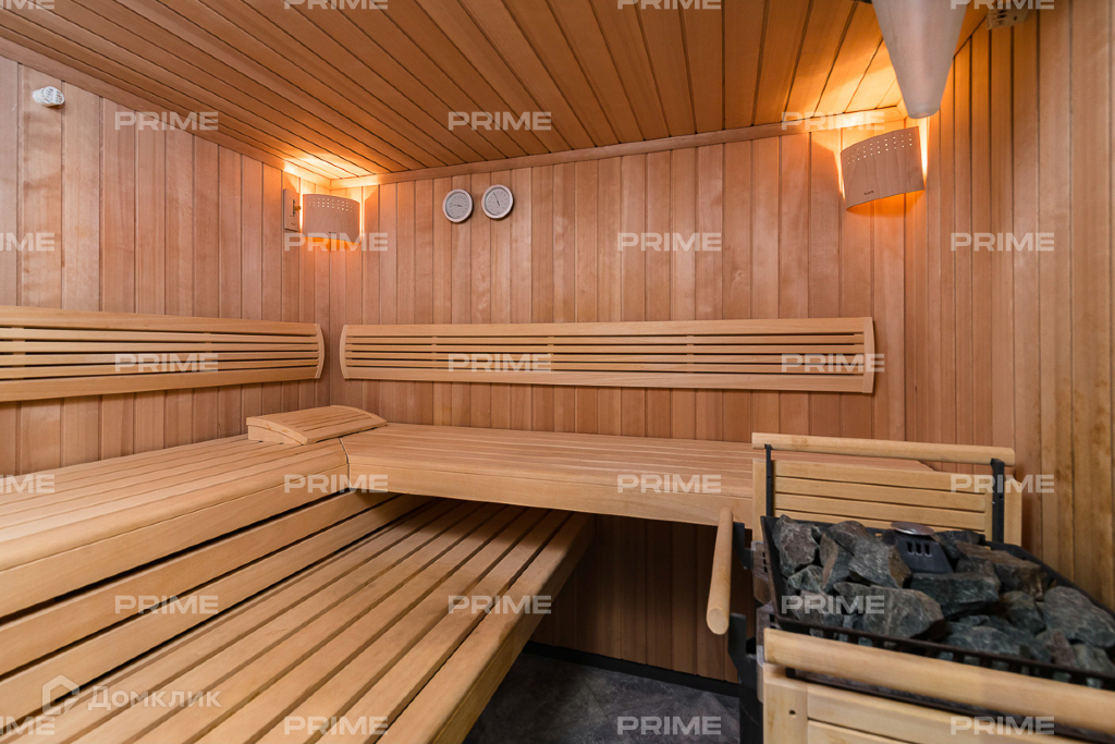 1-й этаж: Холл,кухня, столовая, гостиная с камином, бассейн 8м с джакузи, сауна и комната отдыха, гардеробная, промежуточный уровень: гостевая зона, в которой расположены 2-е спальни с своими санузлами