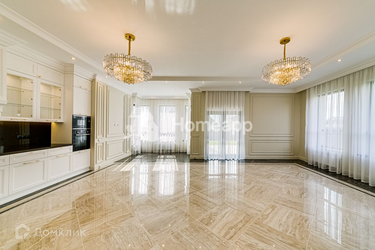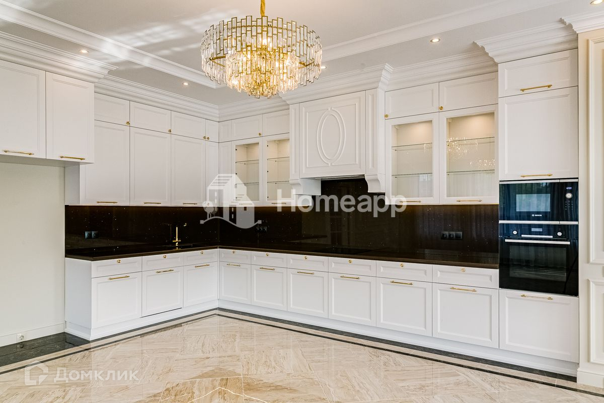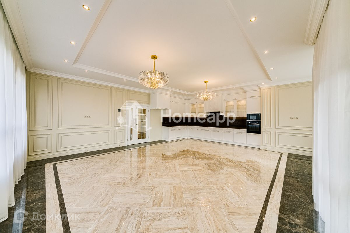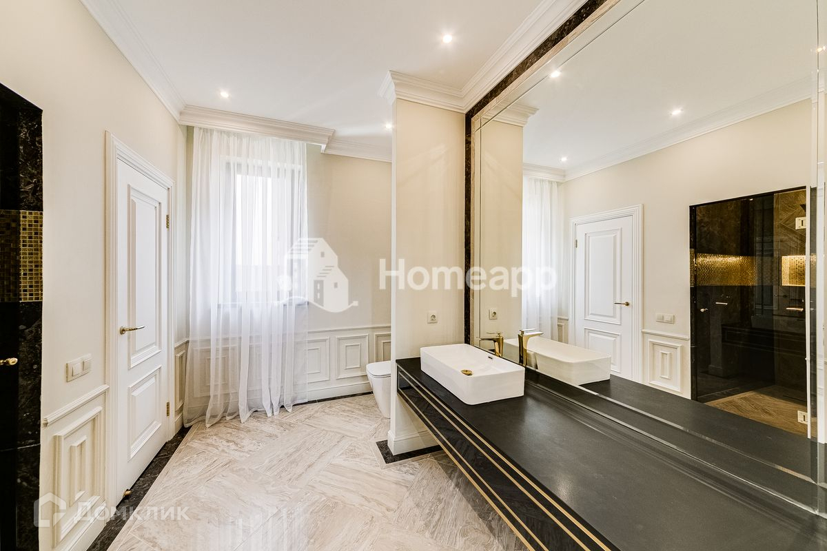 Сделан качественный ремонт в стиле ар-деко. Установлена большая кухня со встроенной техникой. В комнатах сделаны ниши под встроенную мебель. Все ванные комнаты укомплектованы дорогой мебелью и сантехникой.