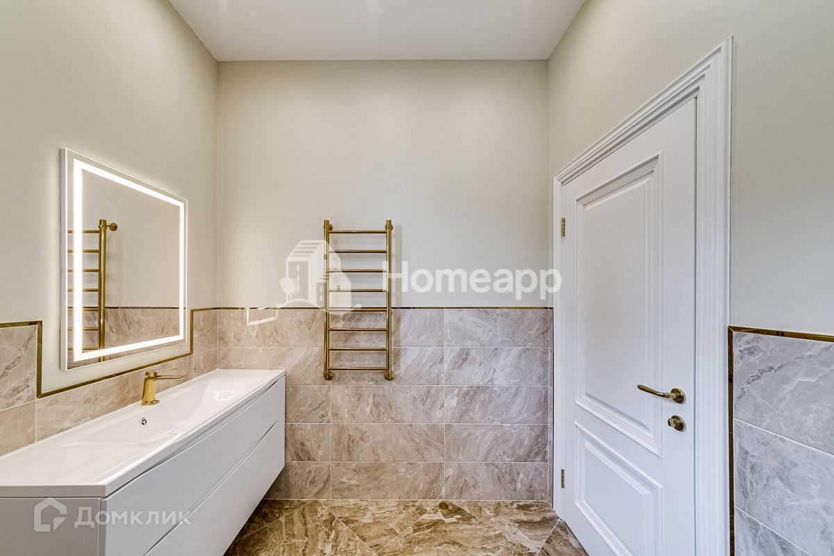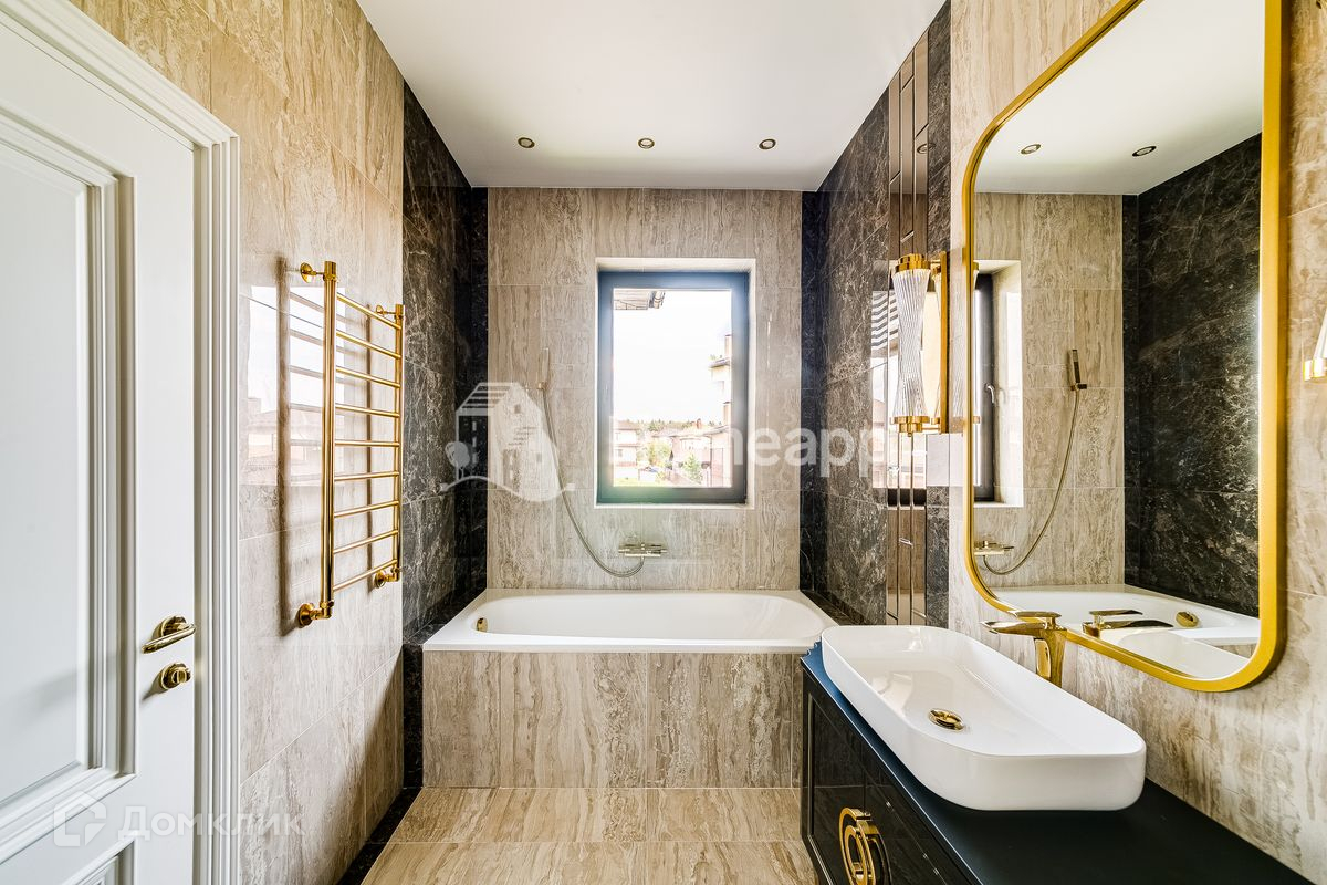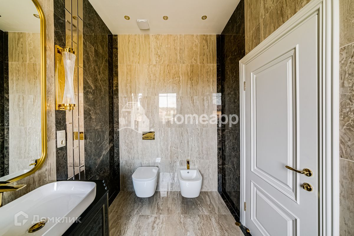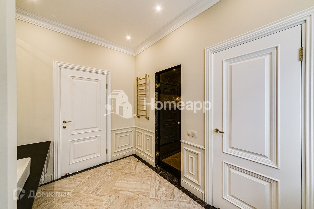 Сделан качественный ремонт в стиле ар-деко. Установлена большая кухня со встроенной техникой. В комнатах сделаны ниши под встроенную мебель. Все ванные комнаты укомплектованы дорогой мебелью и сантехникой.