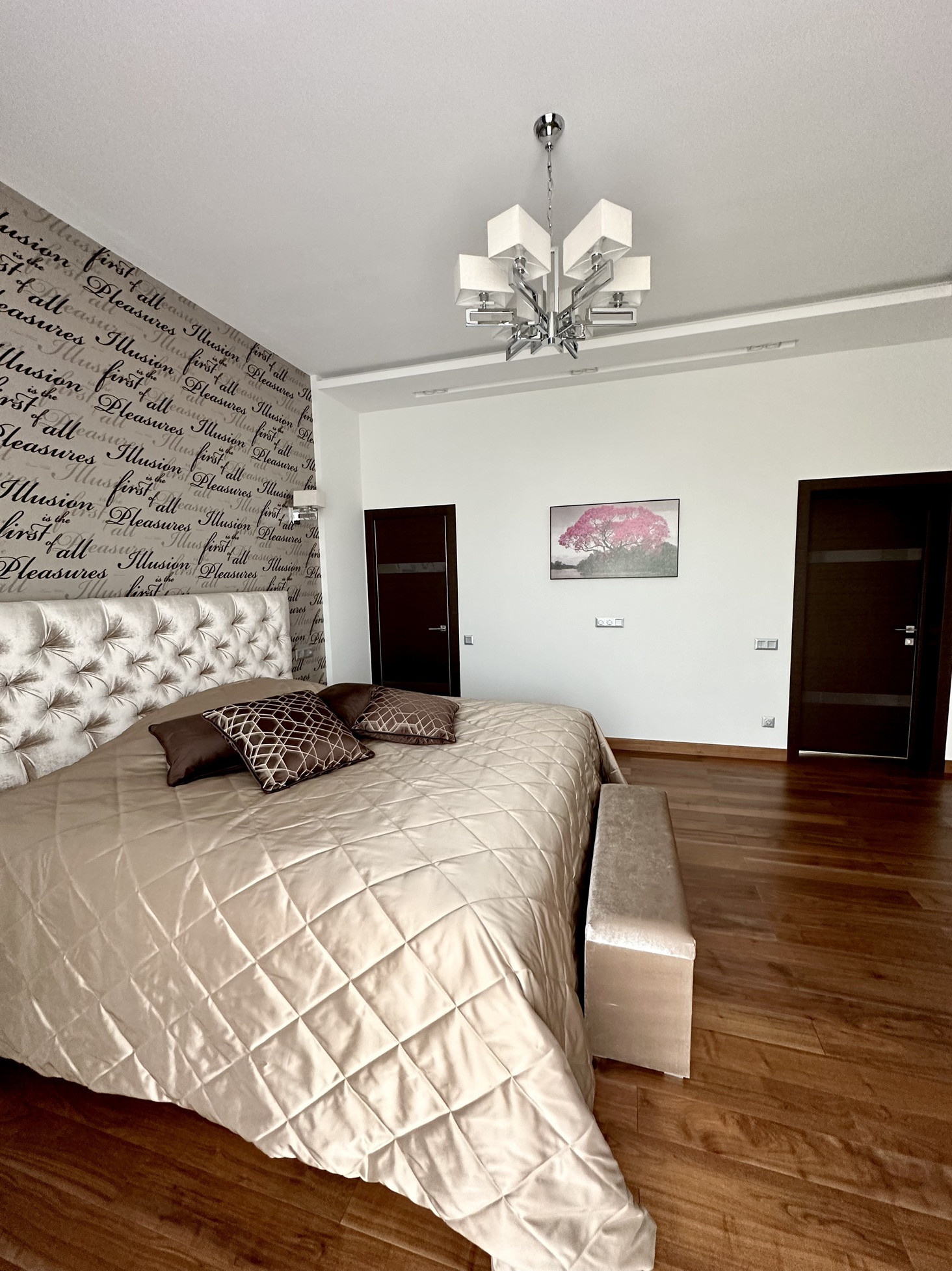 2 этаж : холл, хозяйская спальня с гардеробной и собственным санузлом, 2 спальни и ванная комната.